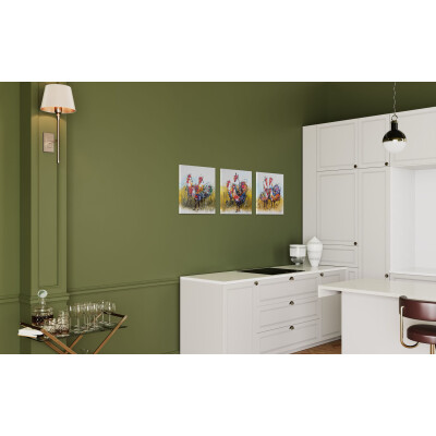 "Gezellige Haantjes" is te bewonderen in onze galerie in Amersfoort. Tevens is dit schilderij beschikbaar via onze kunstuitleen, zodat u het kunstwerk eerst kunt ervaren voordat u tot aankoop overgaat. Natuurlijk is het ook mogelijk om dit prachtige schilderij online aan te schaffen.