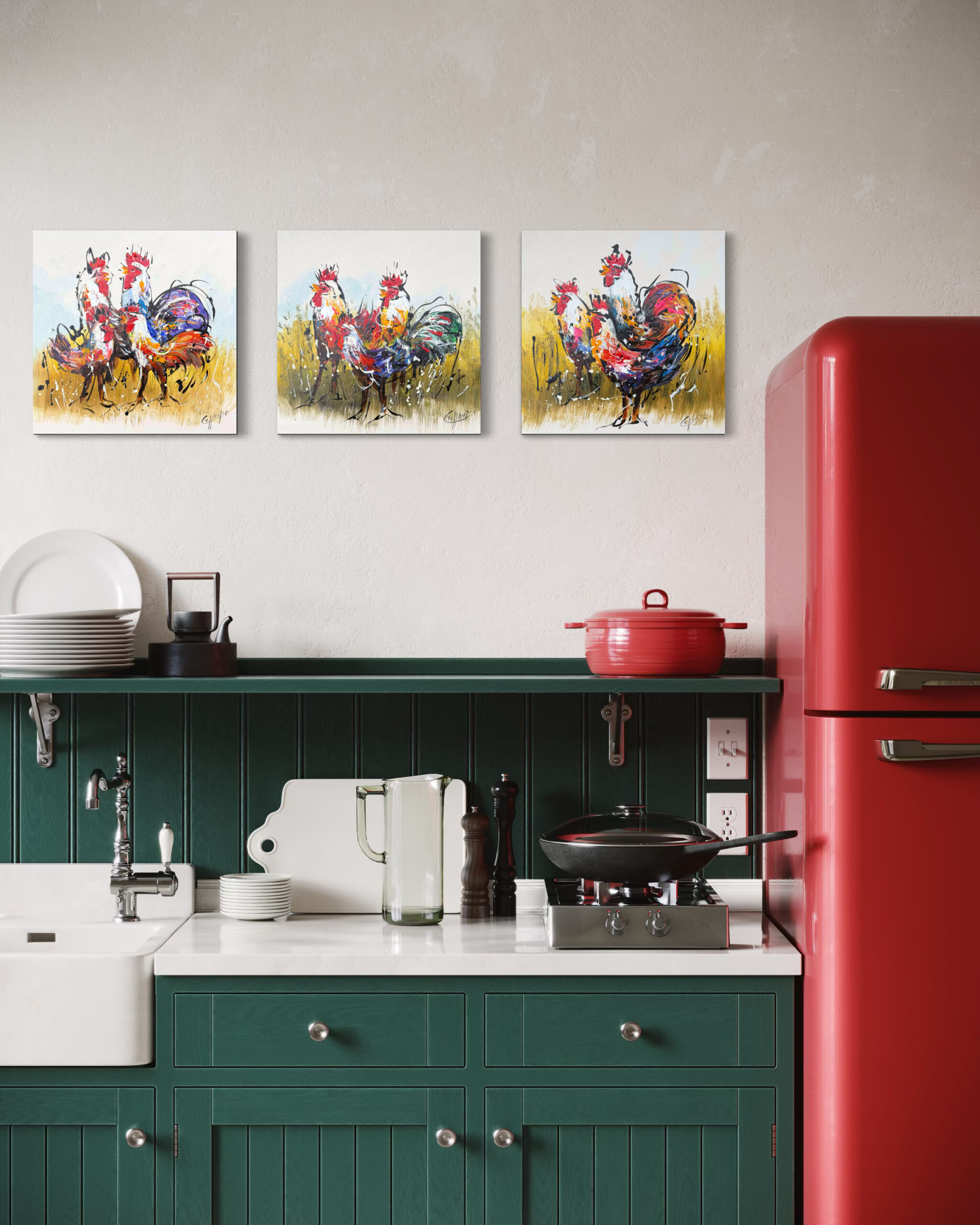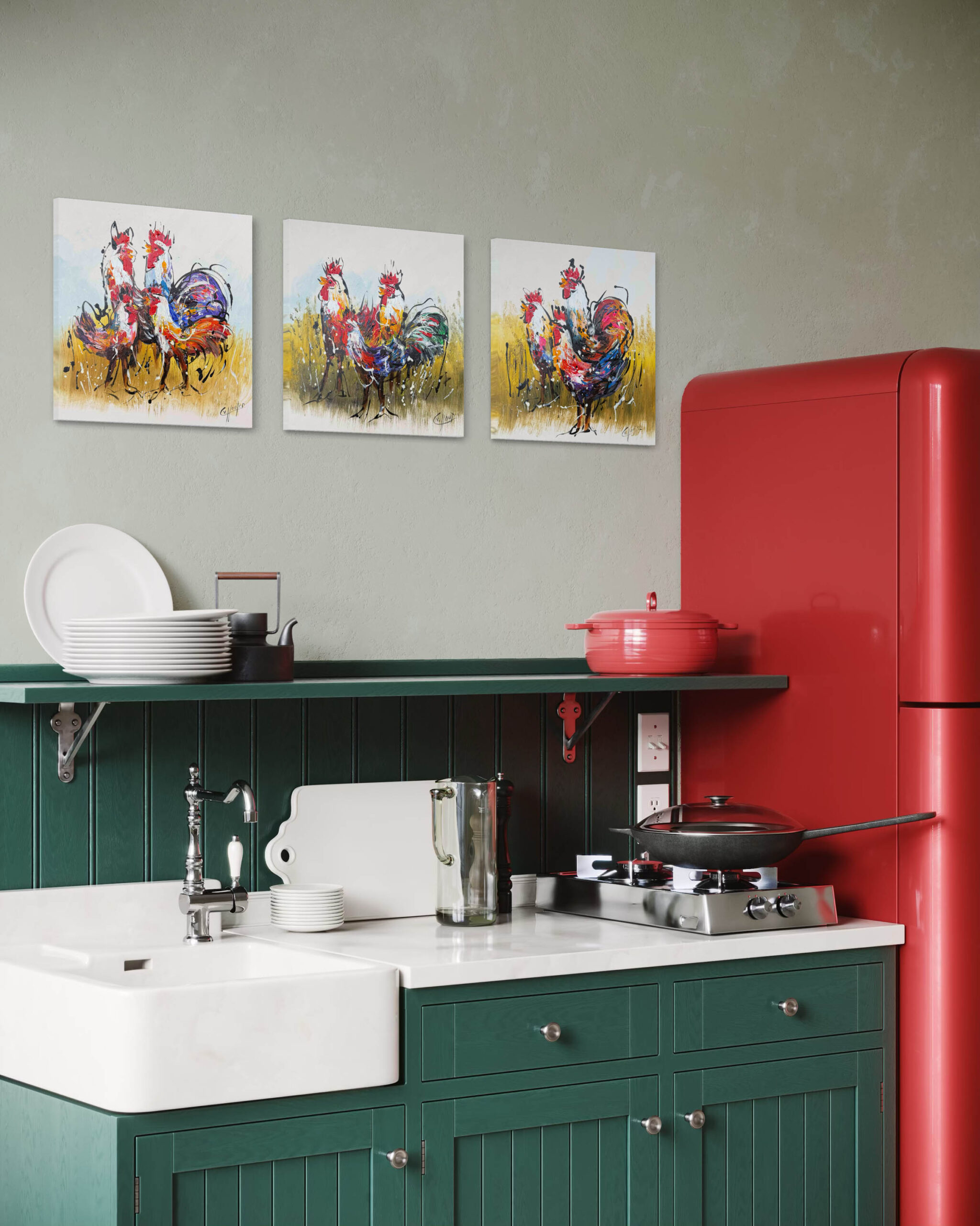 "Gezellige Haantjes" is te bewonderen in onze galerie in Amersfoort. Tevens is dit schilderij beschikbaar via onze kunstuitleen, zodat u het kunstwerk eerst kunt ervaren voordat u tot aankoop overgaat. Natuurlijk is het ook mogelijk om dit prachtige schilderij online aan te schaffen.
