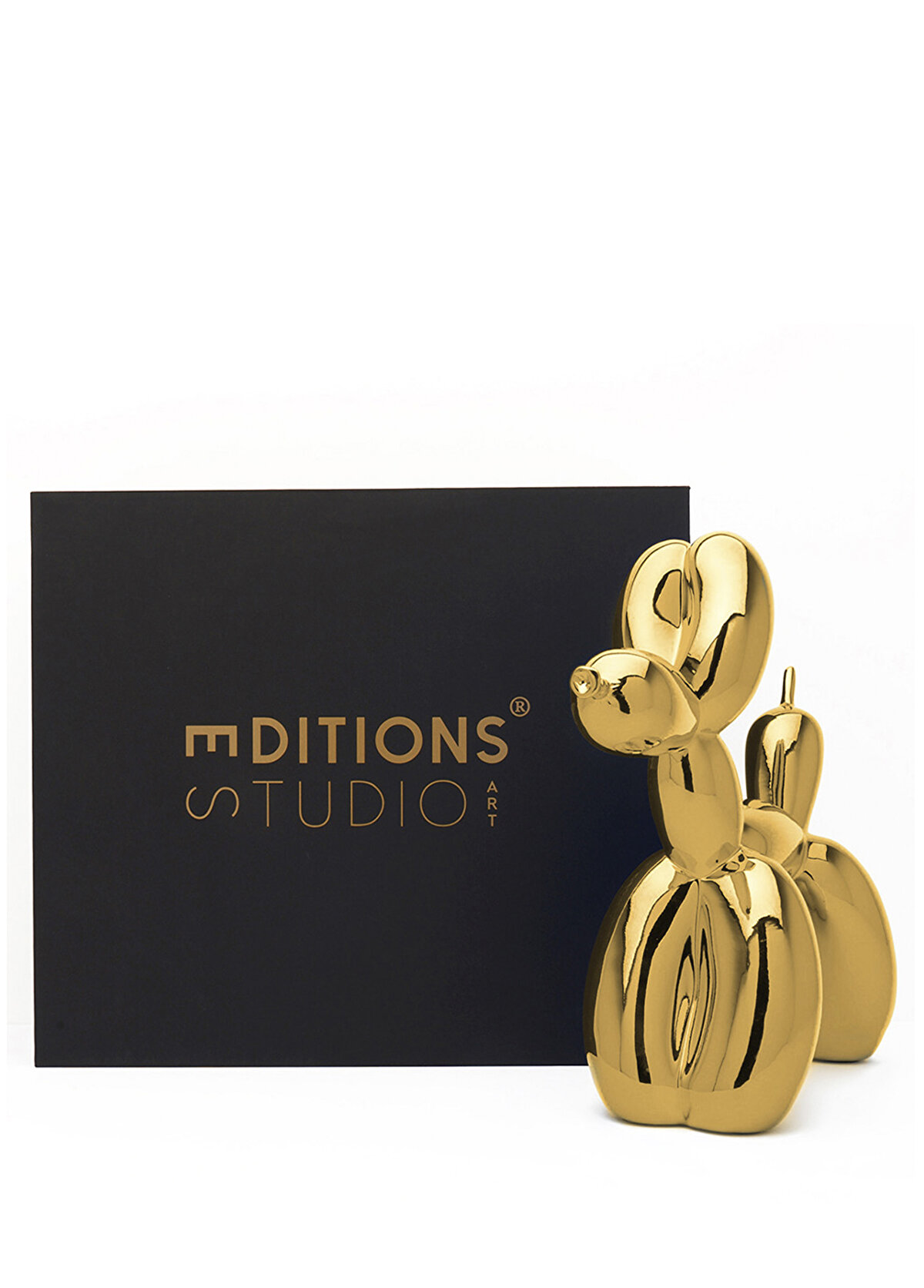 Deze fraaie, zeer hoog afgewerkte Balloon Dog Gold is verkrijgbaar in twee formaten: L (30 x 30 x 12 cm) en XXL (42 x 47 x 16 cm). Elk exemplaar wordt geleverd in een luxe geschenkverpakking en is voorzien van een certificaat van echtheid. Deze exclusieve editie is gelimiteerd tot slechts 500 exemplaren, waardoor het een verzamelobject is.