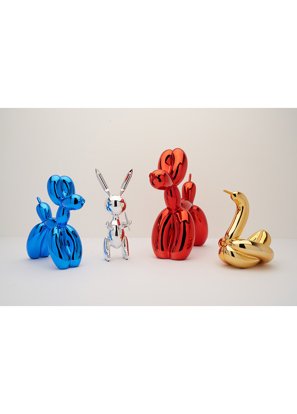 Jeff Koons, geboren in 1955 in York, Pennsylvania, is een van de meest invloedrijke en controversiële kunstenaars van de moderne tijd. Zijn Balloon Dog-serie, onderdeel van de Celebration-reeks uit 1994, heeft wereldwijd erkenning gekregen. De Balloon Dog-sculpturen zijn geïnspireerd door de eenvoudige ballonfiguren die vaak op kinderfeestjes te zien zijn, maar Koons heeft ze getransformeerd tot luxueuze kunstwerken van roestvrij staal met een spiegelende afwerking.
