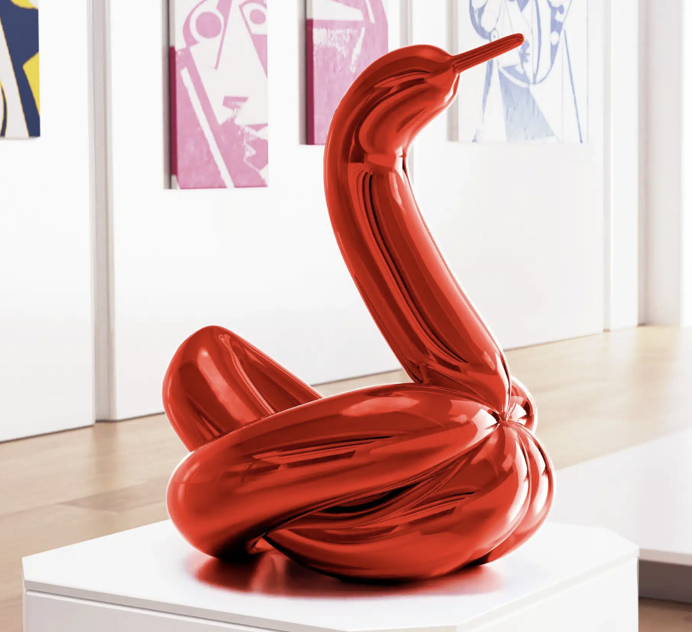 De Balloon Swan Red is niet zomaar een decoratief object; het is een symbool van vreugde, elegantie en vakmanschap. De reflecterende oppervlakken en de gedetailleerde afwerking zorgen voor een unieke kijkervaring, waarbij de kijker actief betrokken wordt bij het kunstwerk.