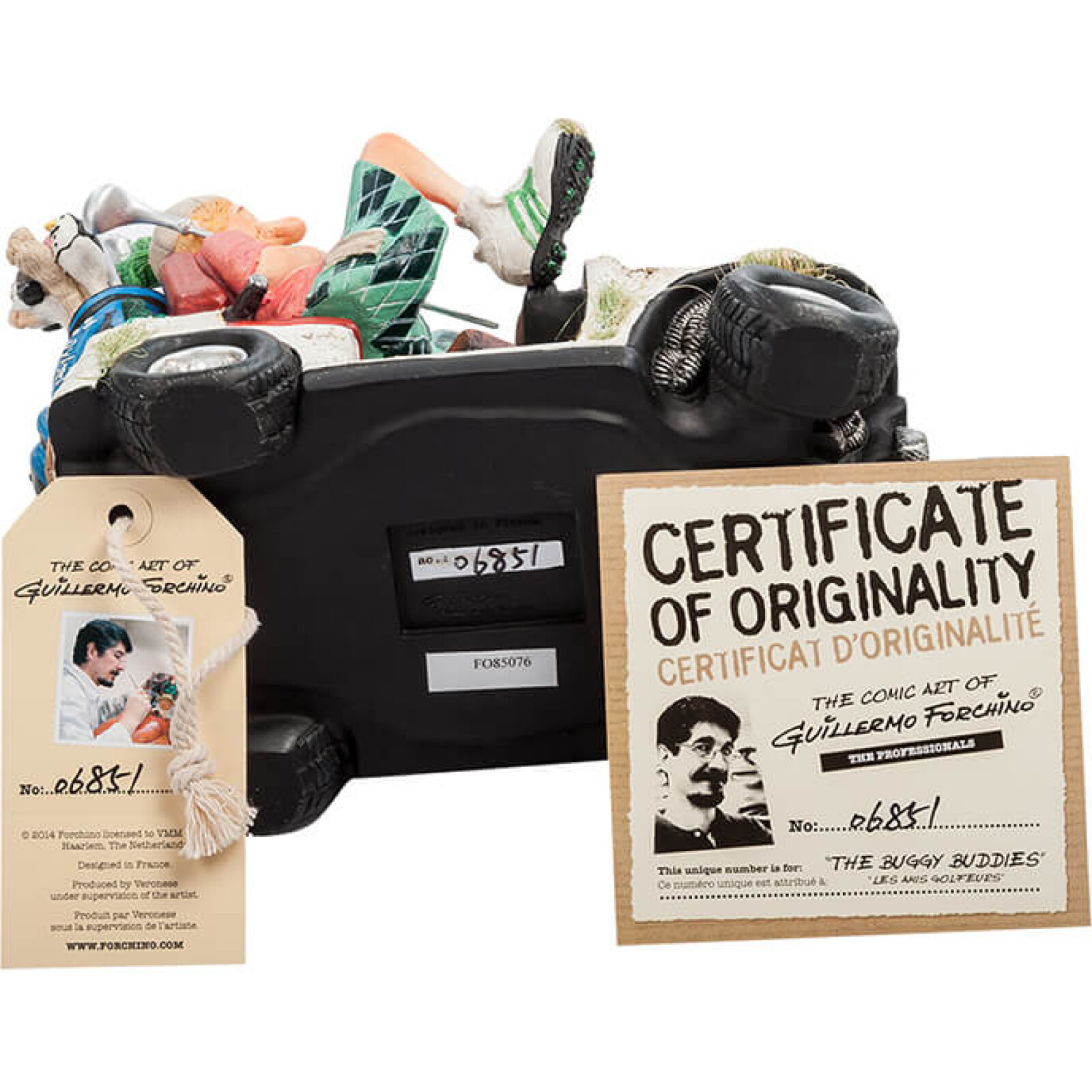 The Buggy Buddies is een opvallend beeld uit de beroemde serie The Vehicles van de gerenommeerde kunstenaar Guillermo Forchino. Dit kunstwerk is een perfecte weergave van Forchino’s kenmerkende stijl, waarbij humor en detail hand in hand gaan.