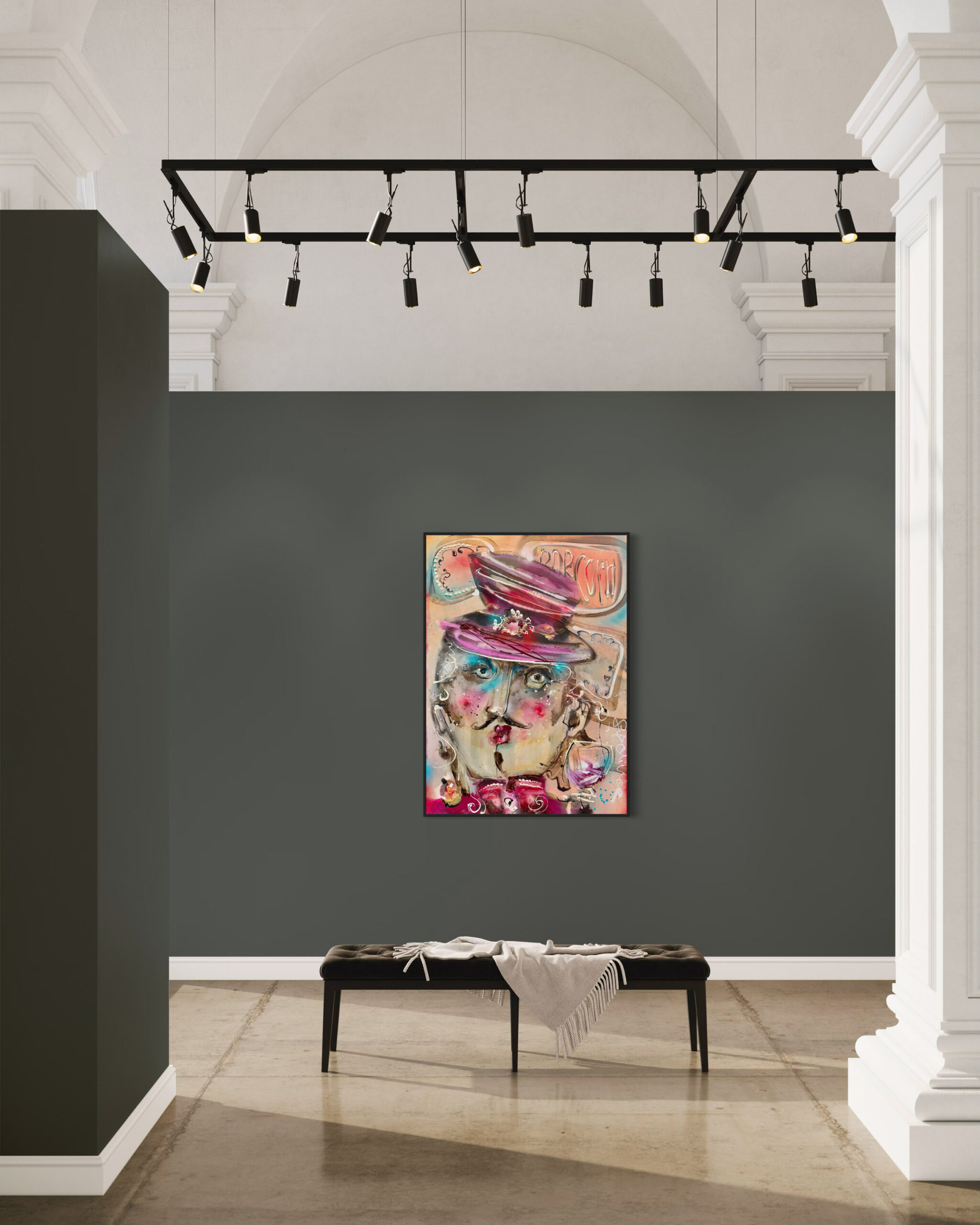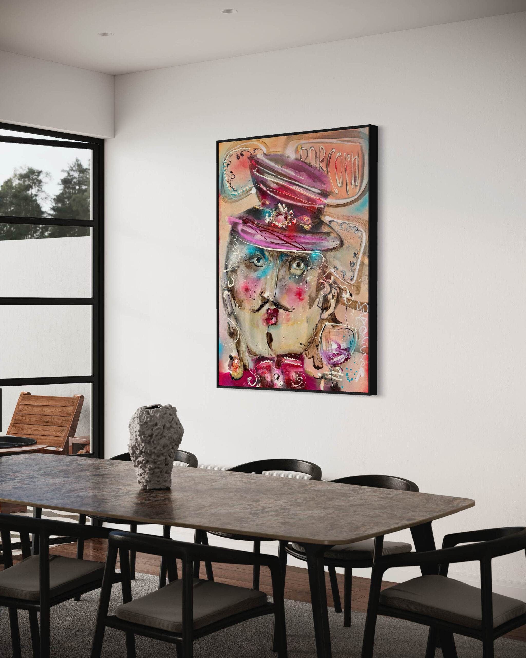 De Directeur is een indrukwekkend schilderij van de kunstenaar Guy Olivier, een waar feestje! Dit Het schilderij is opgezet met dikke lijnen acrylverf op linnen en is recentelijk voorzien van een strakke, zwarte baklijst. Het schilderij komt uiteraard met een certificaat van echtheid, wat de exclusiviteit en waarde ervan onderstreept. Kom langs in onze galerie in Amersfoort om dit schilderij van Guy Olivier te bewonderen.