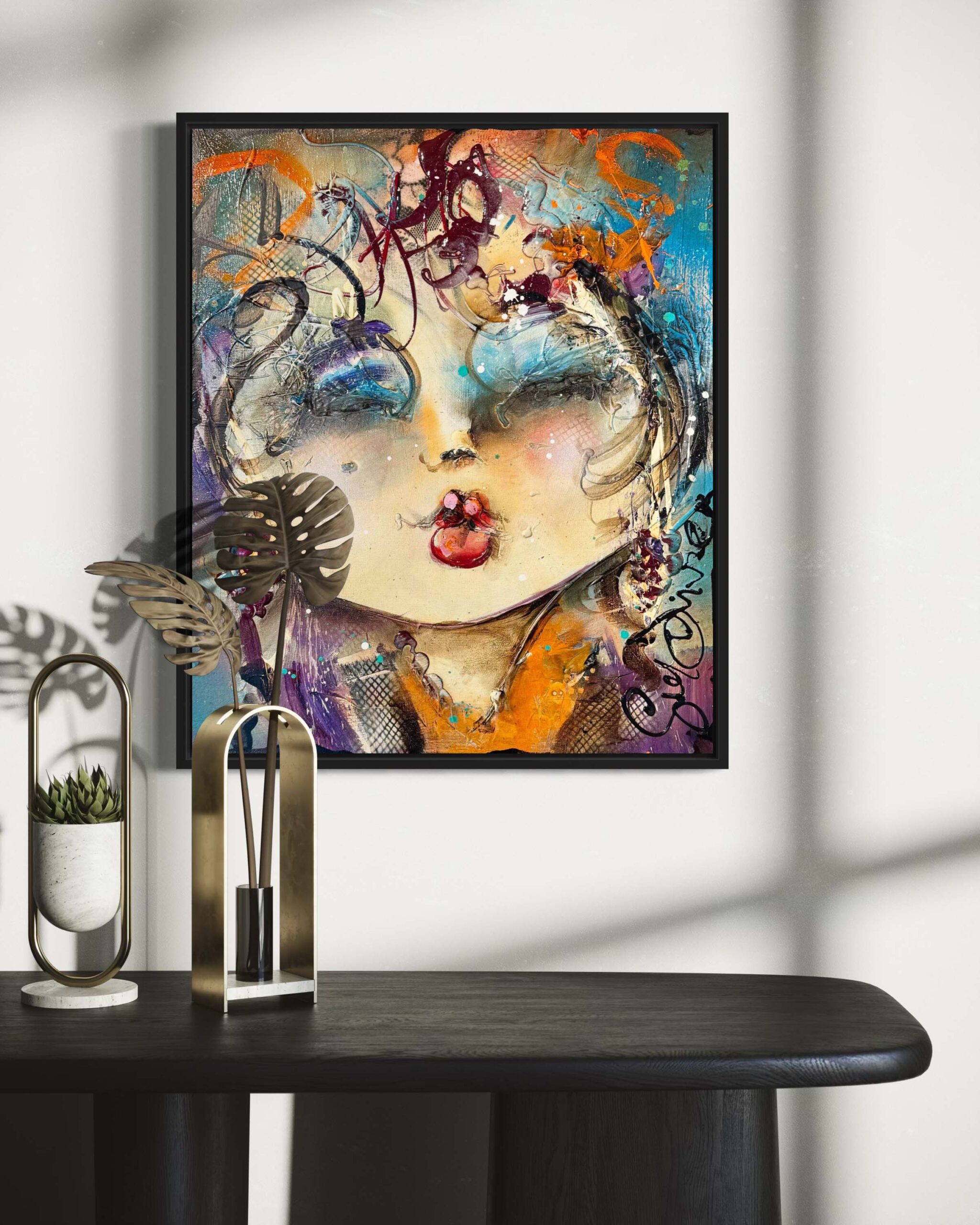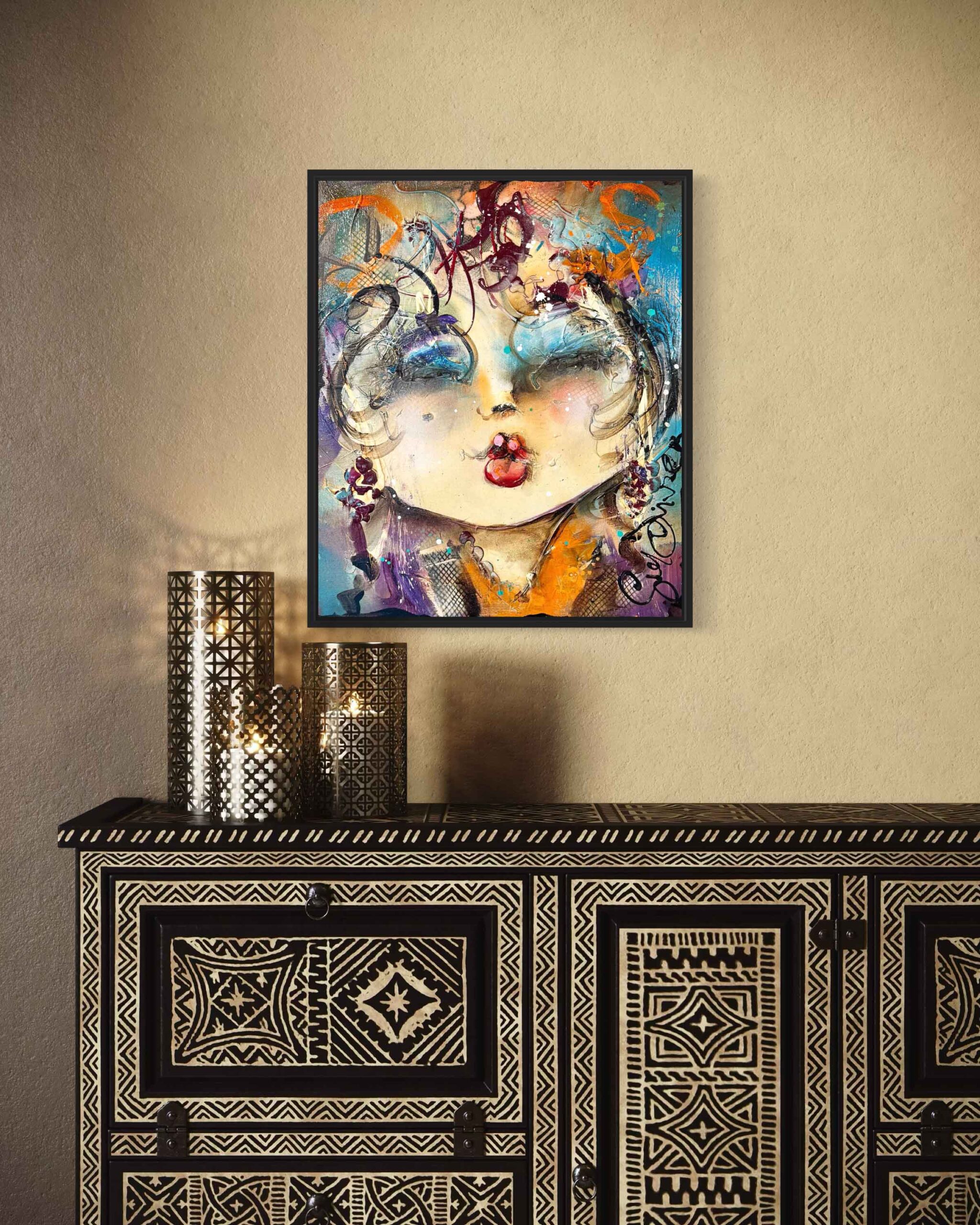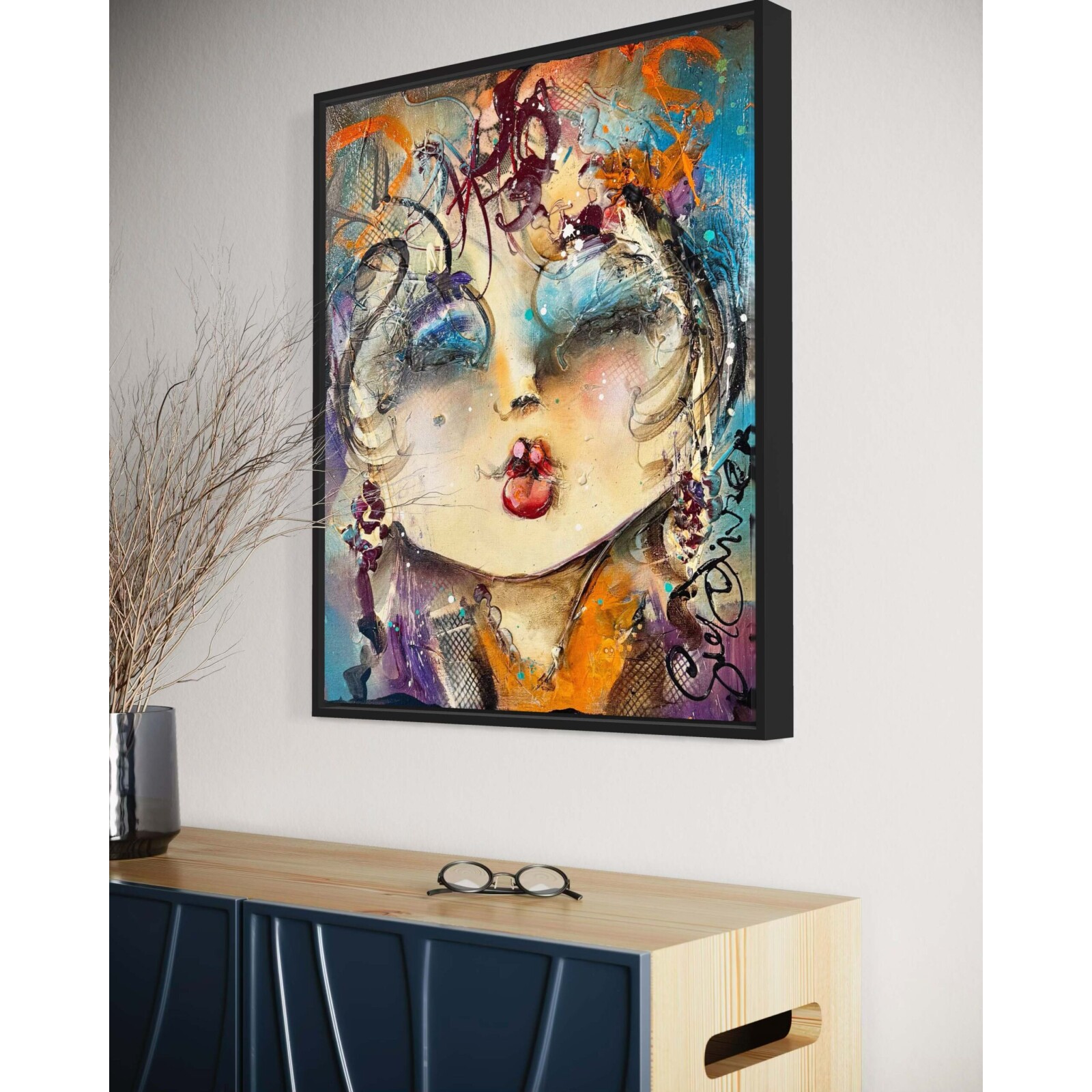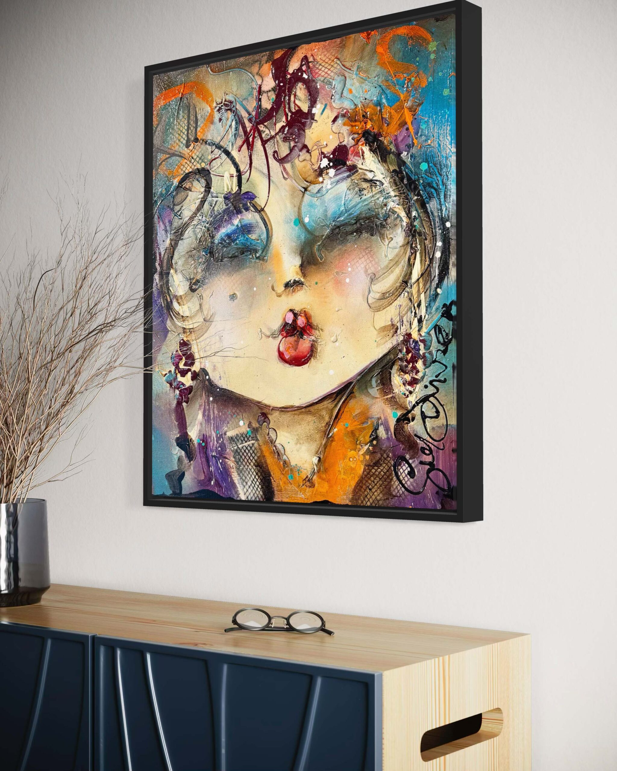 Dit schilderij is aan de zijkanten doorgeschilderd en kan in principe zo worden opgehangen. Wij zijn echter van mening dat dit kunstwerk een lijst verdient, waardoor het nóg meer tot zijn recht komt. Wij hebben dit kunstwerk recentelijk ingelijst met een strakke, matzwarte lijst. Vraagt je interieur om een ander profiel of kleur? Laat je in de galerie vrijblijvend adviseren over de inlijstmogelijkheden. We hebben keuze uit honderden Italiaanse en Spaanse lijsten die dit kunstwerk helemaal ten goede laat komen!