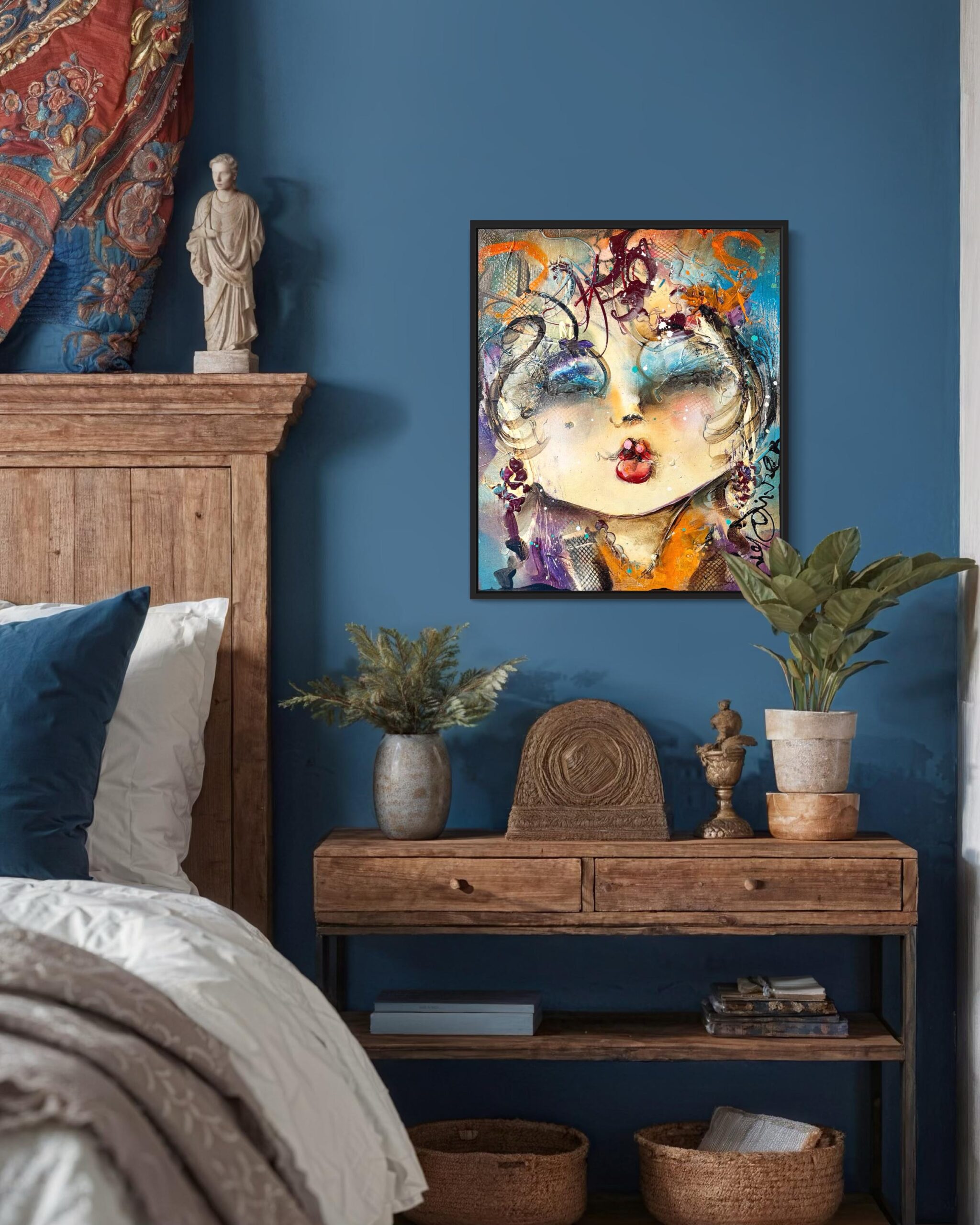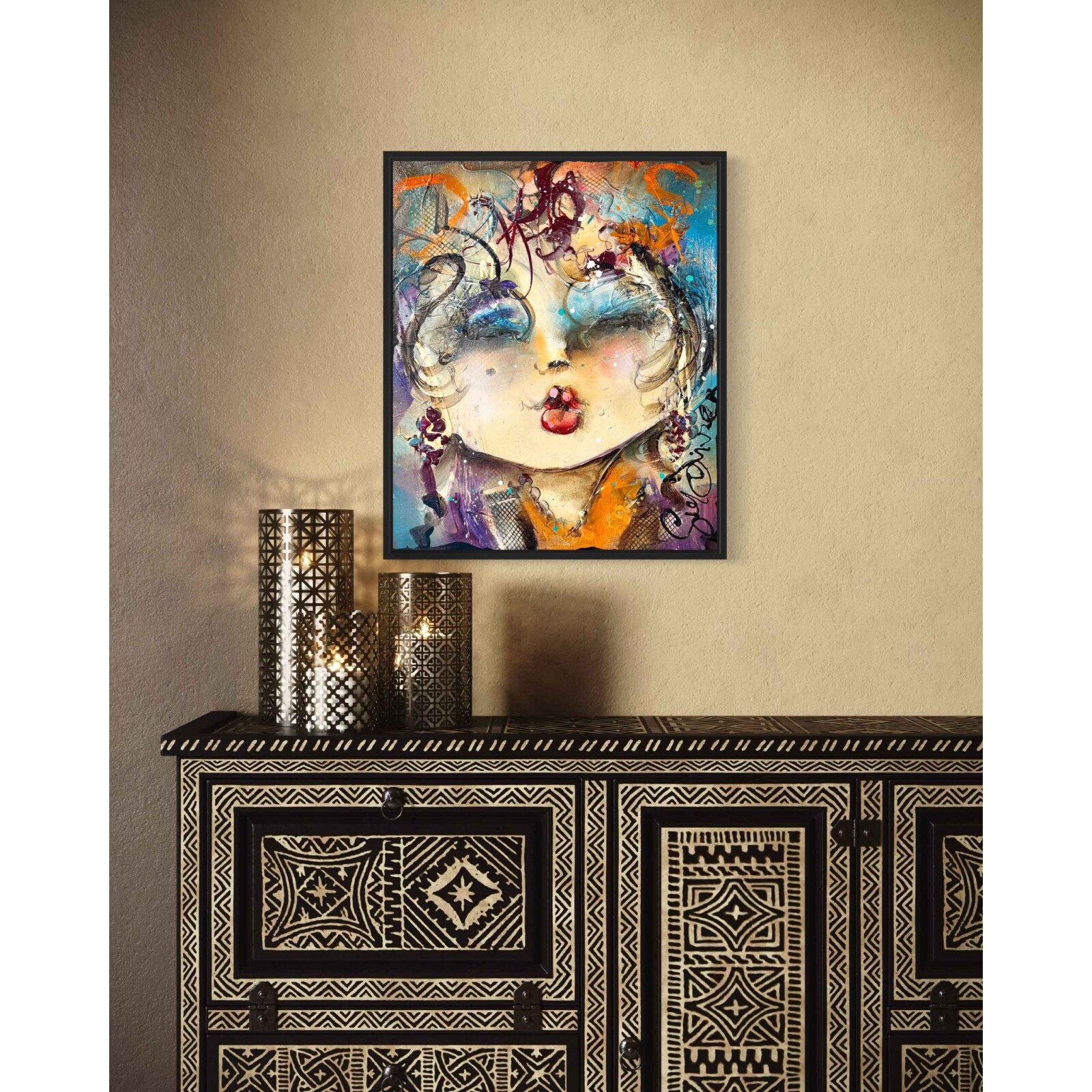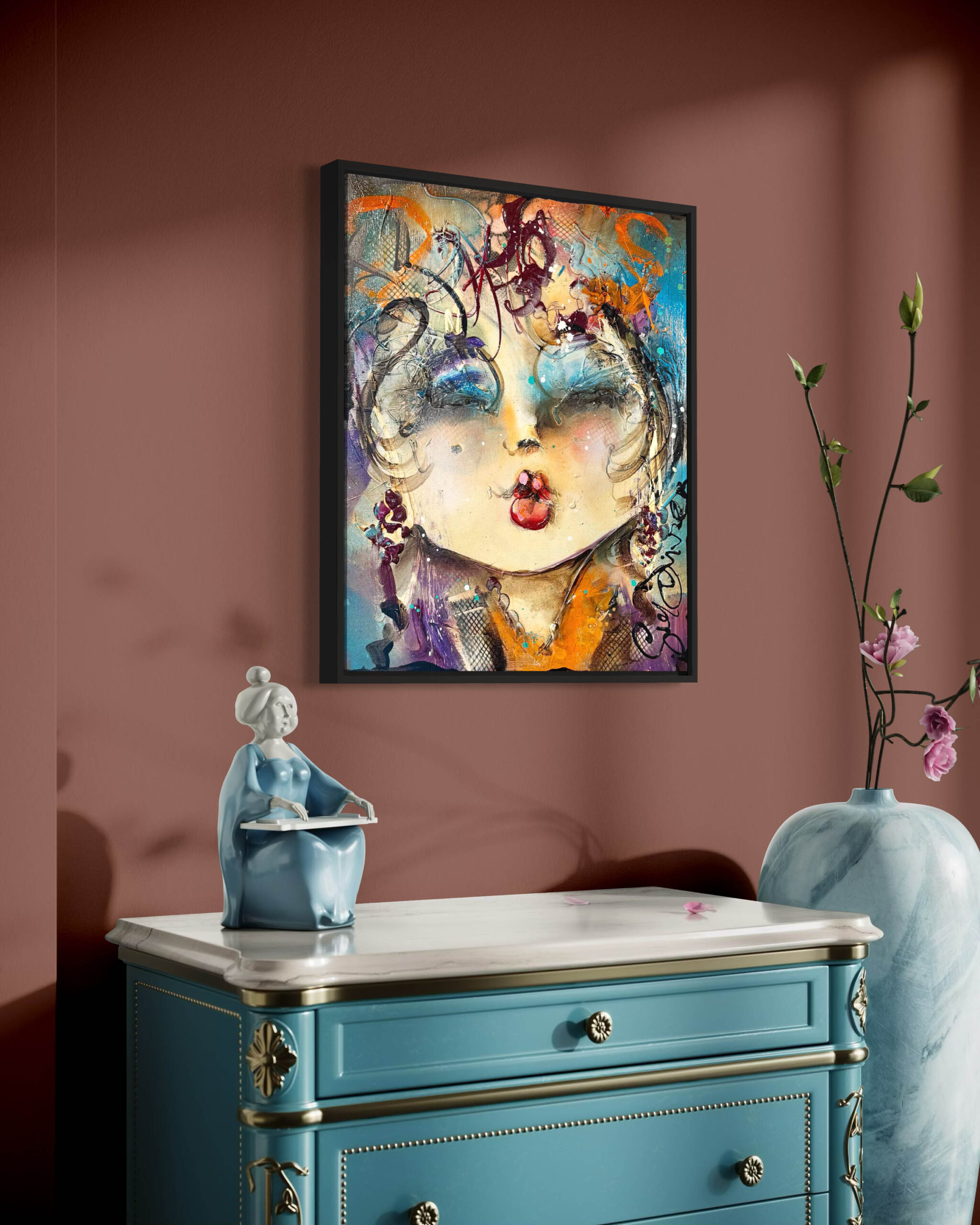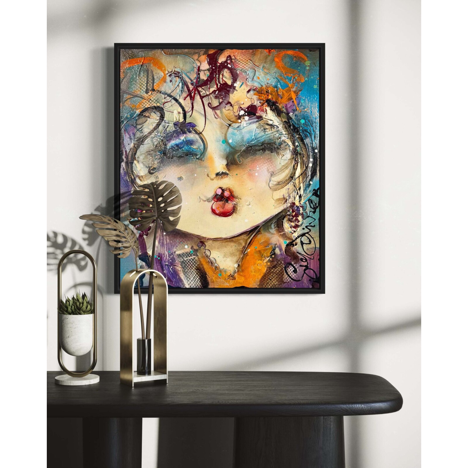 Dit schilderij is aan de zijkanten doorgeschilderd en kan in principe zo worden opgehangen. Wij zijn echter van mening dat dit kunstwerk een lijst verdient, waardoor het nóg meer tot zijn recht komt. Wij hebben dit kunstwerk recentelijk ingelijst met een strakke, matzwarte lijst. Vraagt je interieur om een ander profiel of kleur? Laat je in de galerie vrijblijvend adviseren over de inlijstmogelijkheden. We hebben keuze uit honderden Italiaanse en Spaanse lijsten die dit kunstwerk helemaal ten goede laat komen!