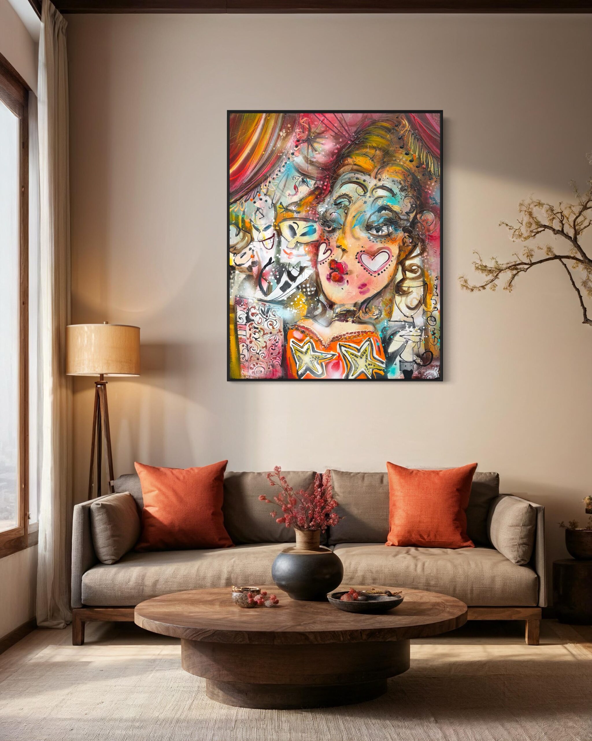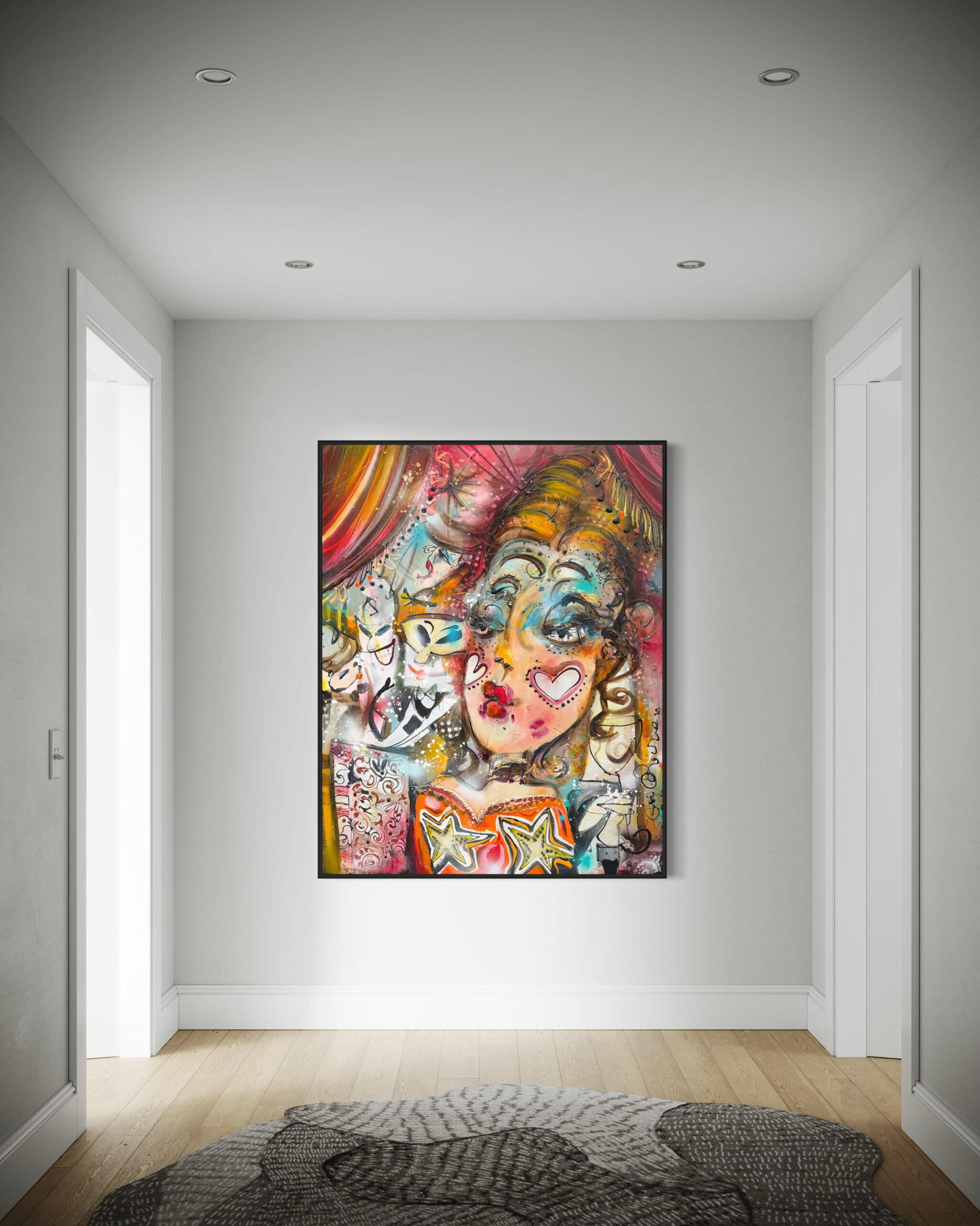 Théâtre d’Amour is een indrukwekkend schilderij van de kunstenaar Guy Olivier, een waar feestje! Dit Het schilderij is opgezet met dikke lijnen acrylverf op linnen en is recentelijk voorzien van een strakke, zwarte baklijst. Het schilderij komt uiteraard met een certificaat van echtheid, wat de exclusiviteit en waarde ervan onderstreept. Kom langs in onze galerie in Amersfoort om dit schilderij van Guy Olivier te bewonderen.