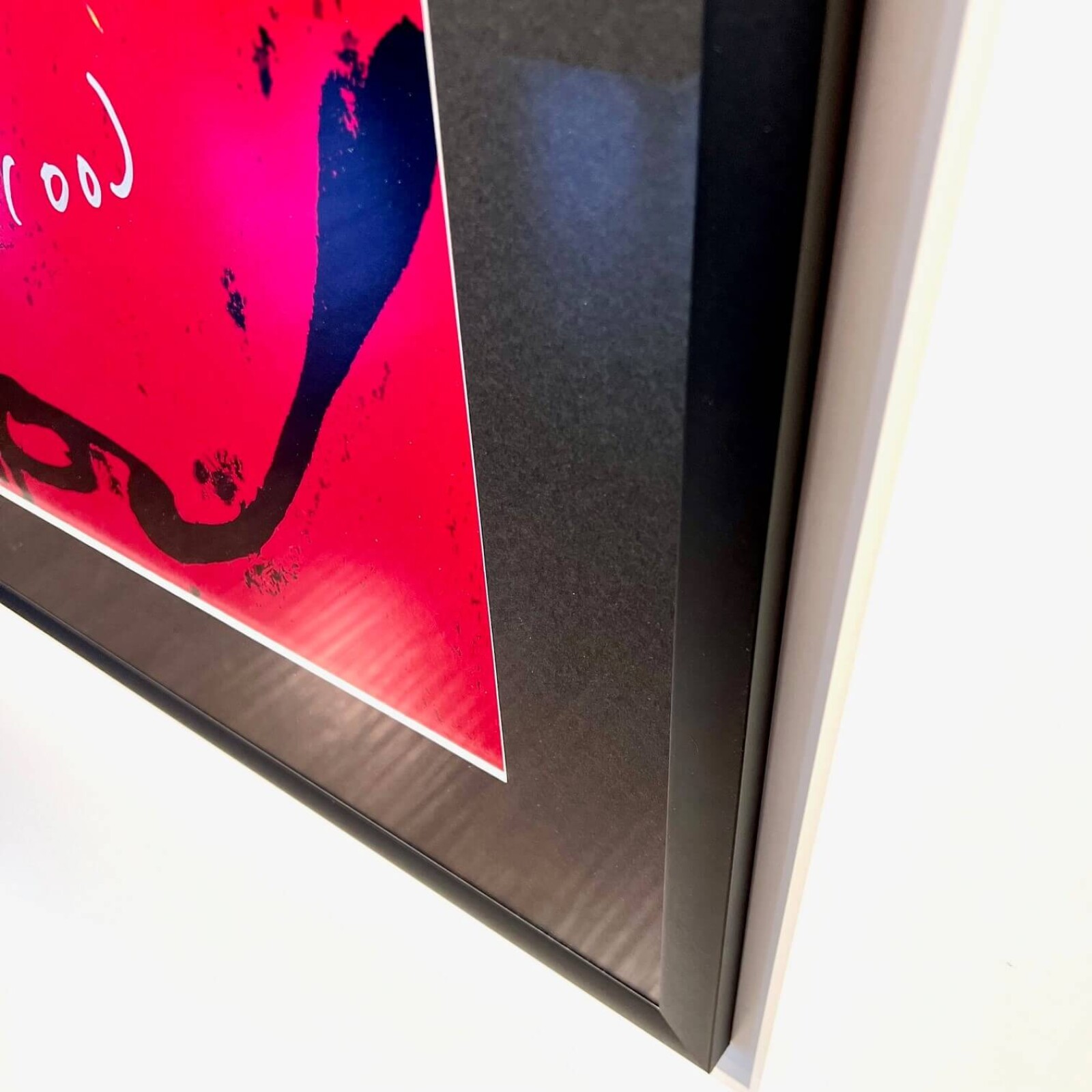 - Strakke mat zwarte lijst van 2 cm breed met wit passepartout en museumglas