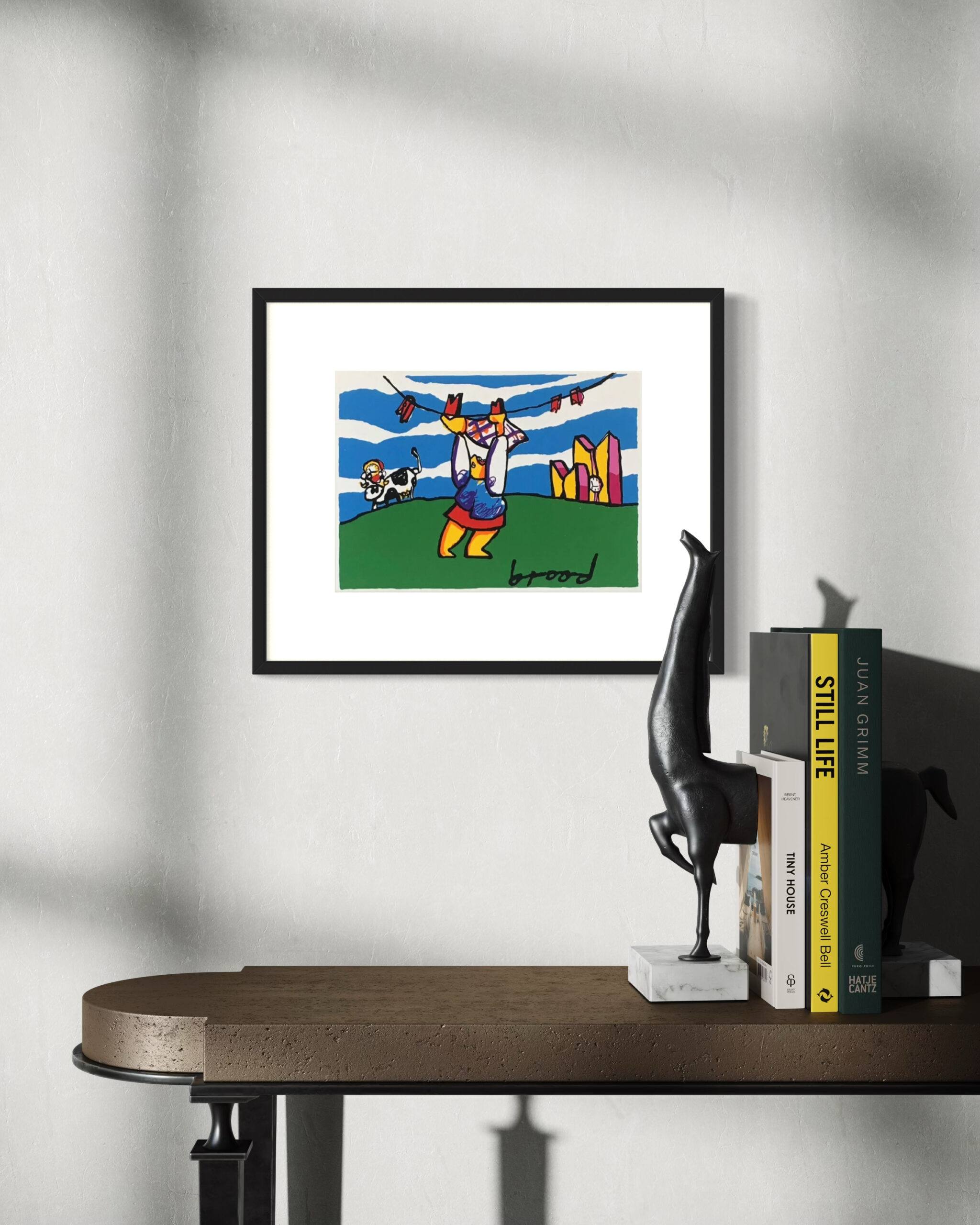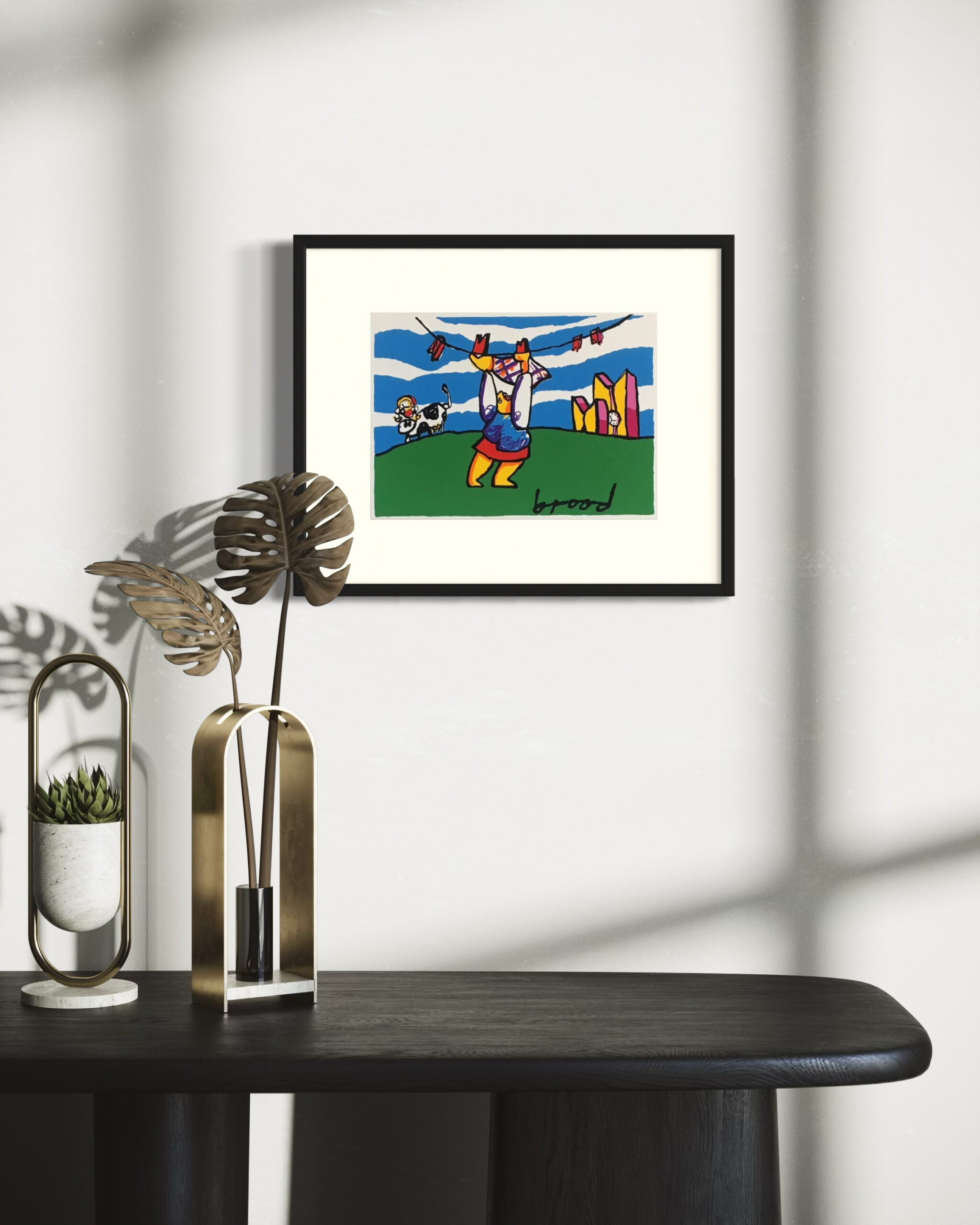 Wasdag is een leuke zeefdruk van Herman Brood. Het betreft een originele, E.A. genummerde zeefdruk, voorzien van lijst, passepartout en museumglas.