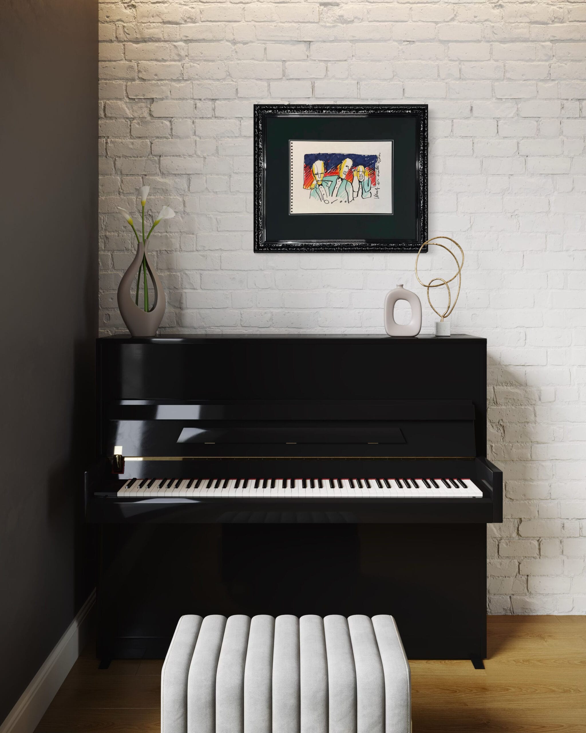 Dit kunstwerk is voorzien van een elegante zwarte hoogglans ornament lijst, compleet met een zuurvrij passe-partout. Het formaat van 61×72 cm is inclusief lijst. Om de tekening optimaal te beschermen en te conserveren, is het voorzien van 99% UV-werend museumglas. Dit zorgt ervoor dat de kleuren en details van het kunstwerk behouden blijven. Wil je liever een andere lijst? Geen probleem. In onze galerie hebben wij meer dan 1000 verschillende profielen.