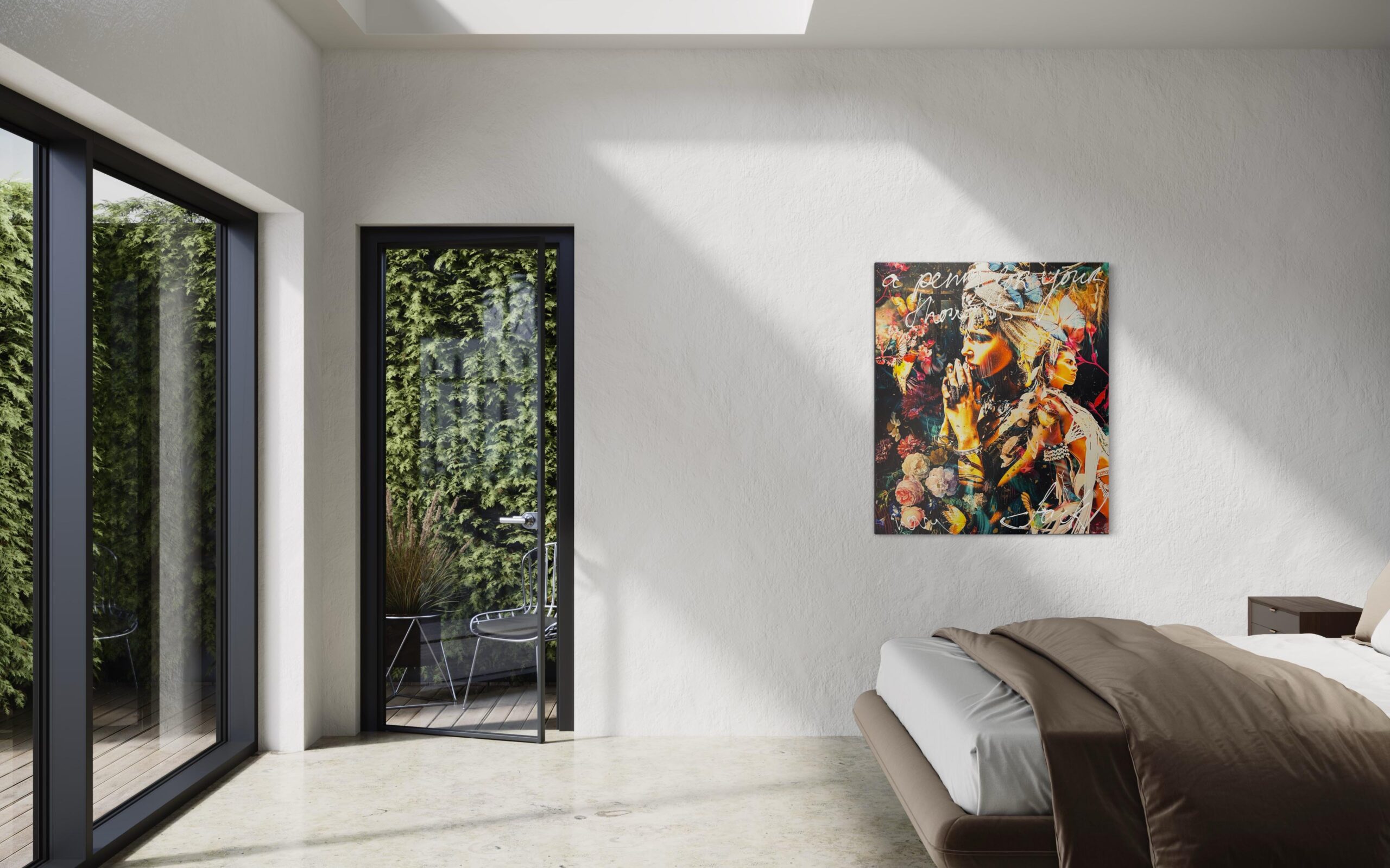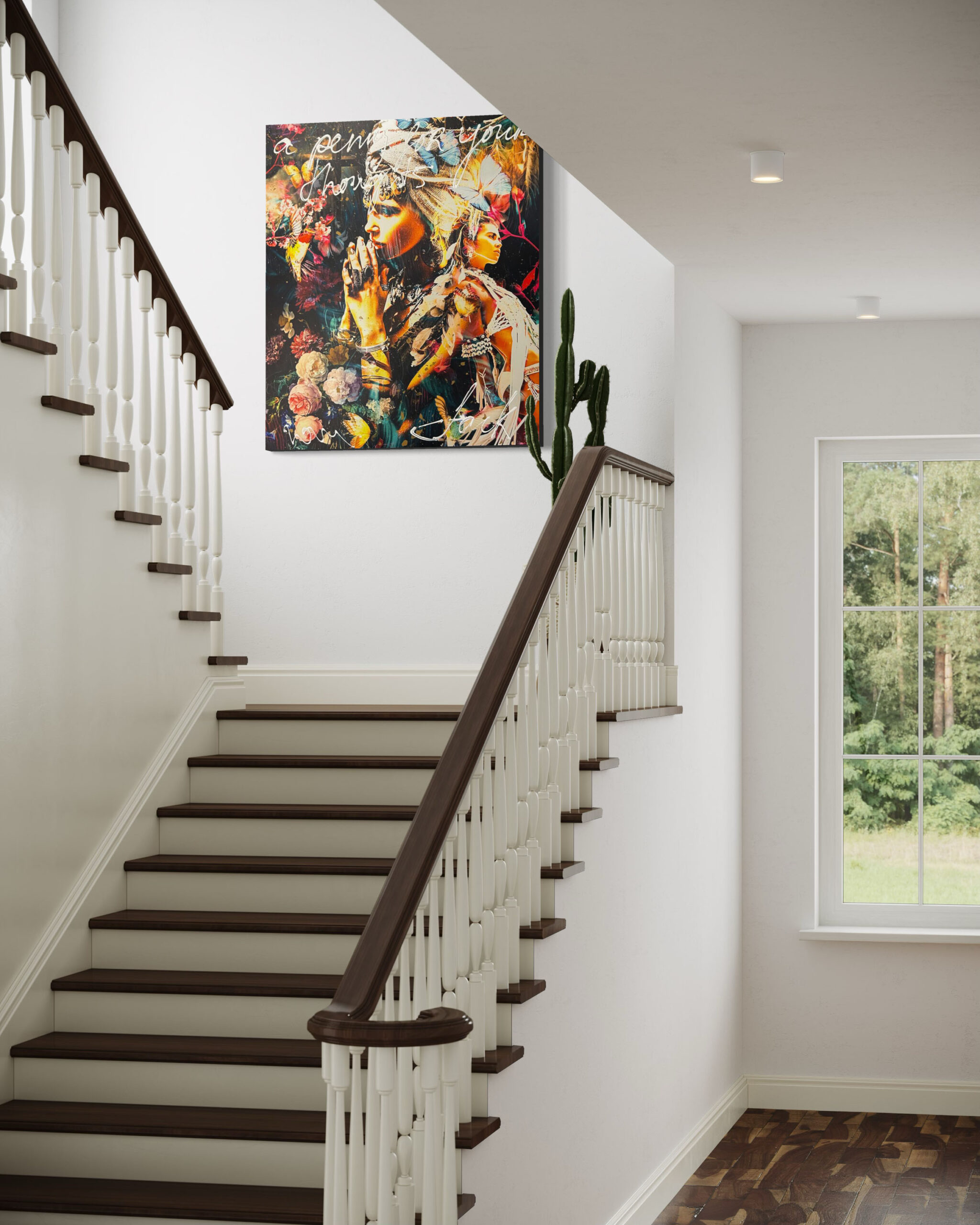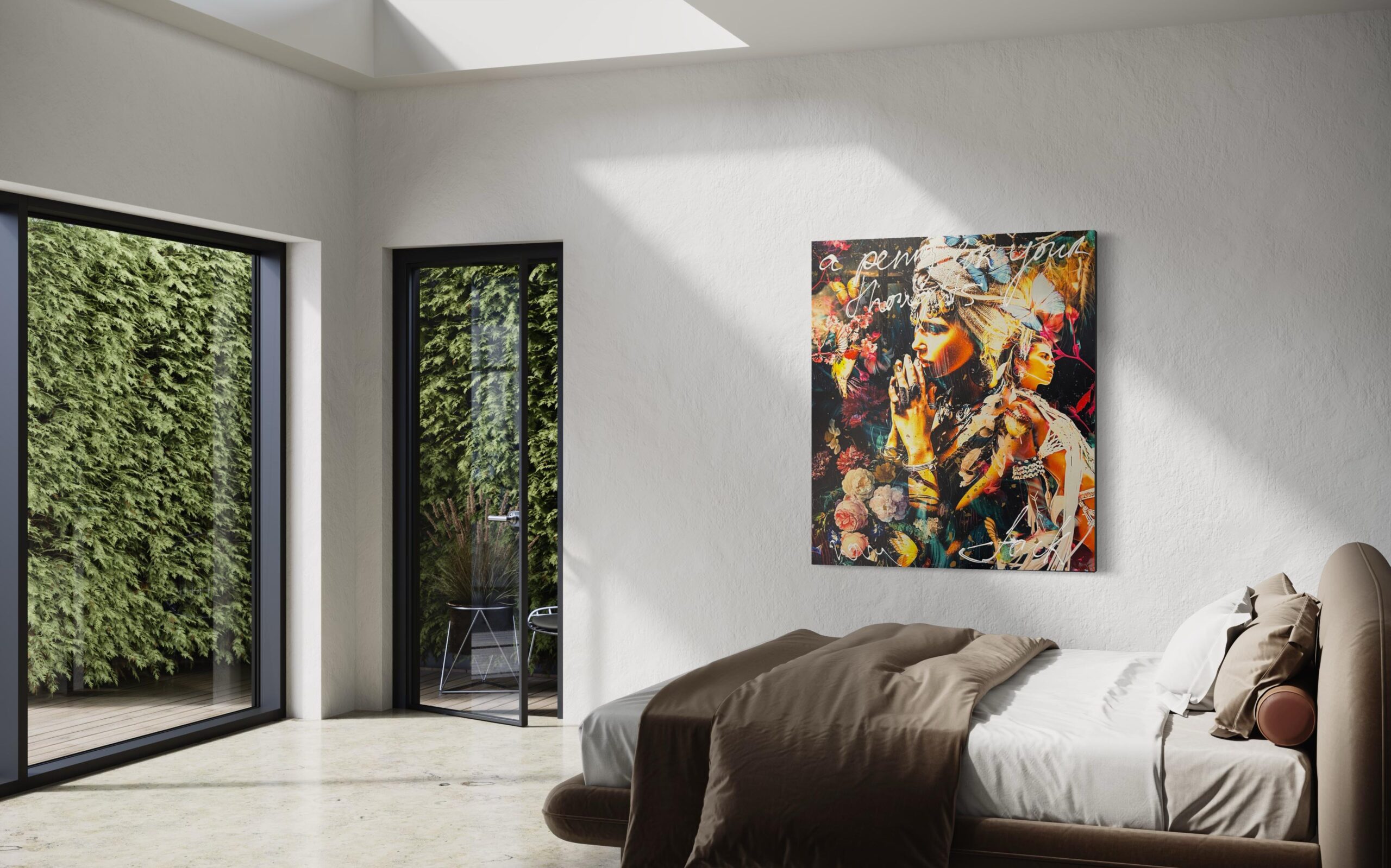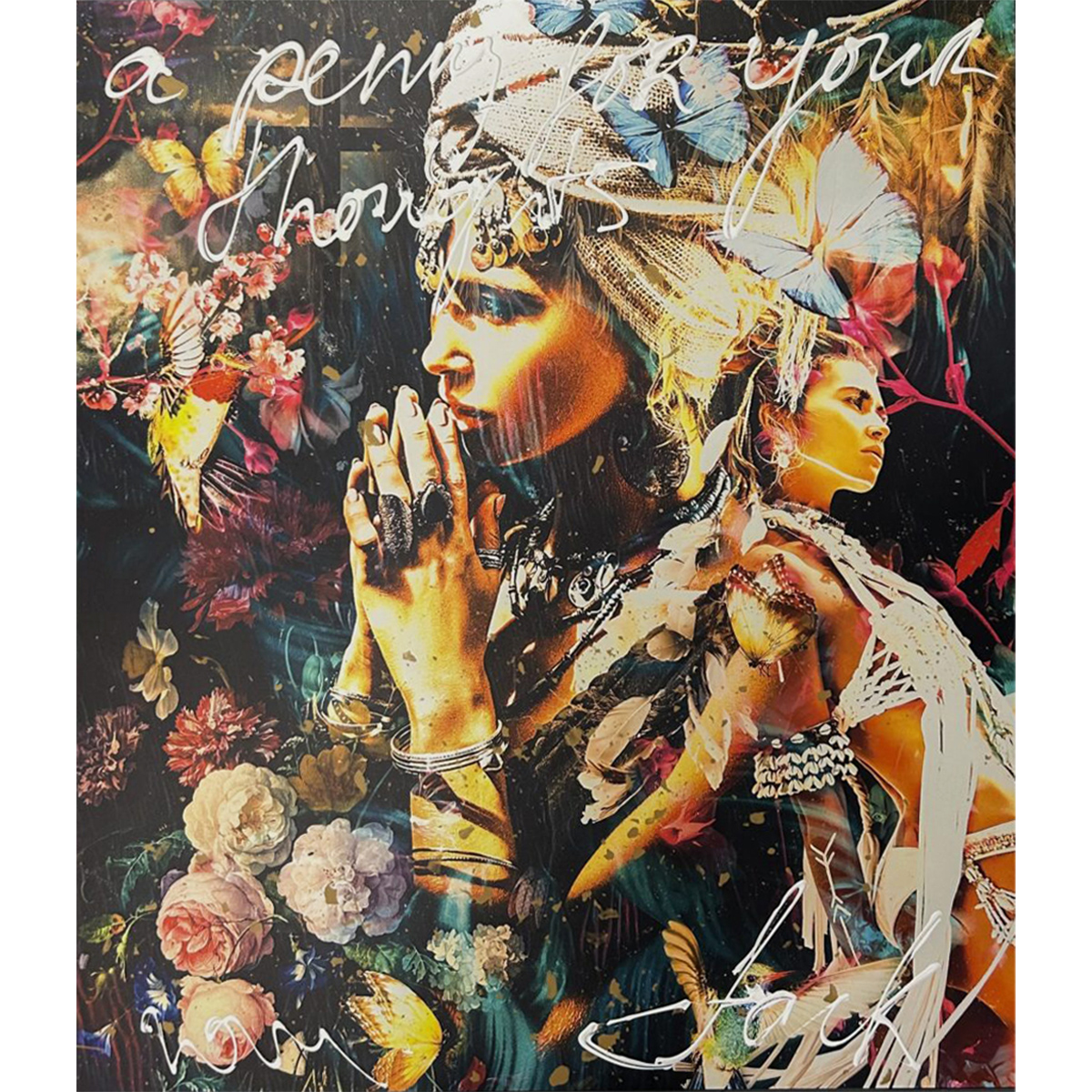 Deze uitdrukking wordt vaak gebruikt tussen familie en vrienden wanneer ze iemand aansporen om te weten waar de ander in zijn/haar gedachten verdwaald is. Wat heeft de hoofdpersoon van dit kunstwerk in gedachten? De combinatie van fototechnieken en acryl, afgewerkt met een glanzende laag epoxy zorgen voor een stijlvolle, chique uitstraling. Het is vervaardigd op Dibond en voorzien van een stevig, 5 cm dik houten frame, waarvan de zijkanten zijn doorgeschilderd. Hierdoor is het kunstwerk direct klaar om aan de muur te hangen.