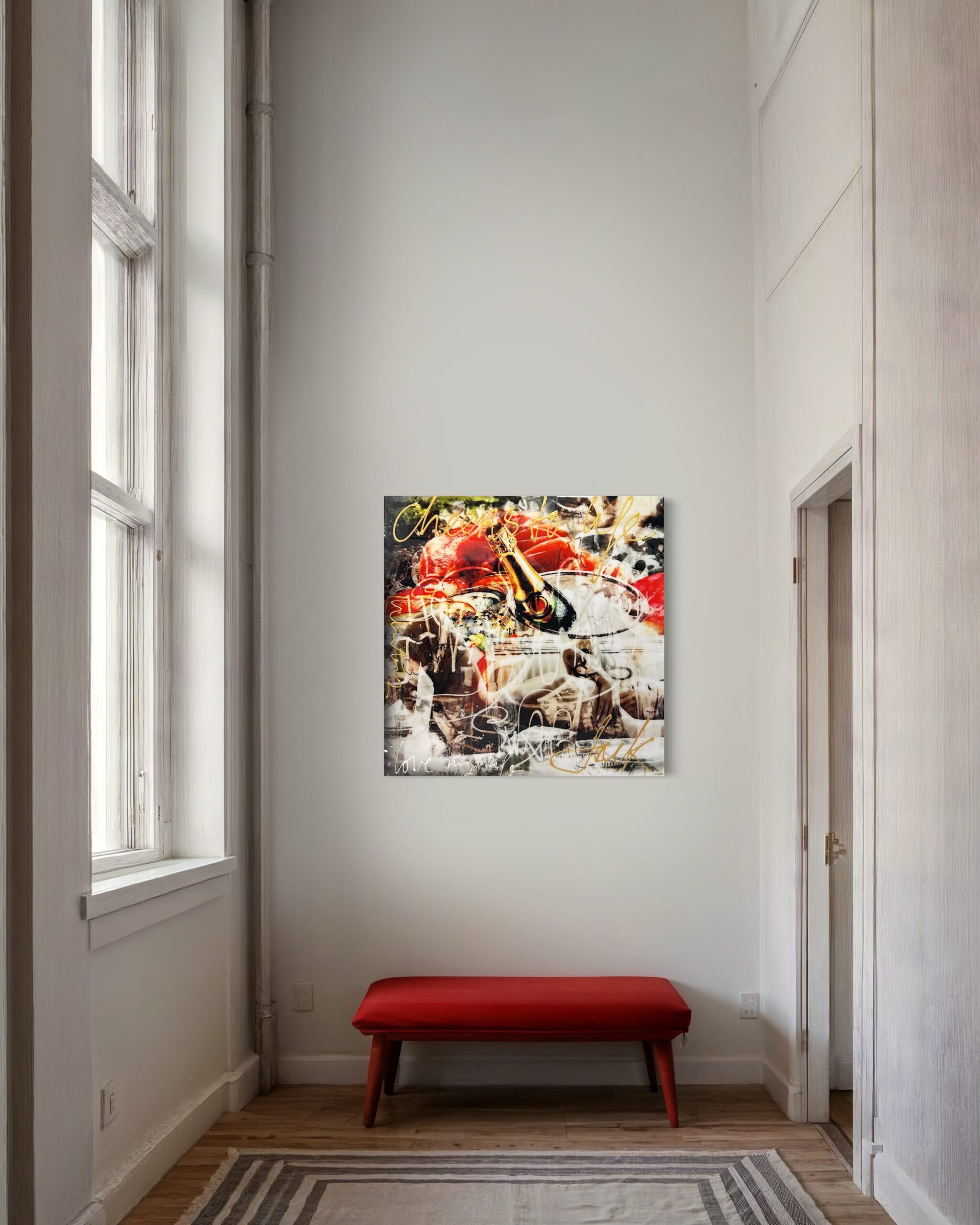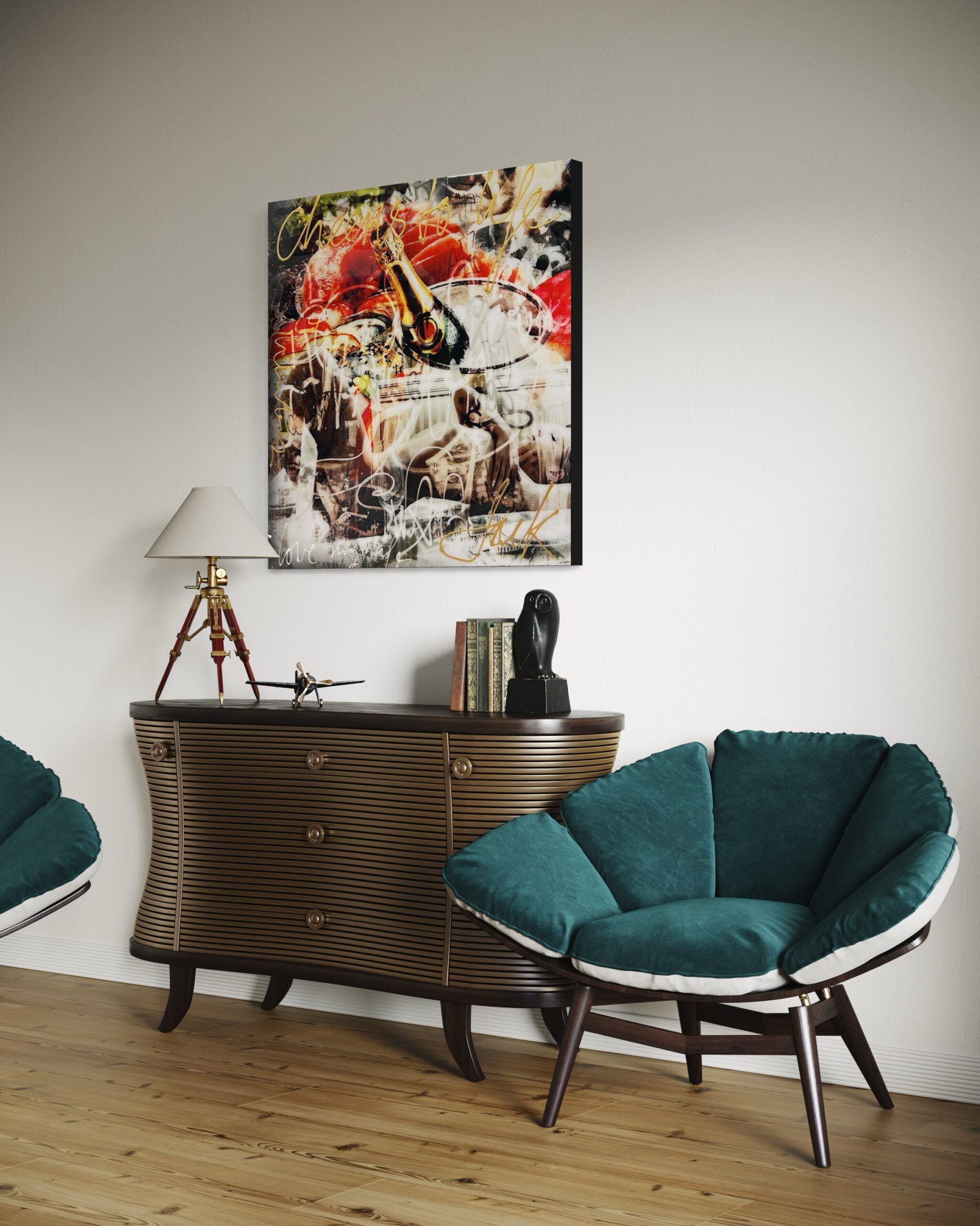 Dit kunstwerk van Jack Liemburg is een waar feest! De combinatie van fototechnieken en acryl, afgewerkt met een glanzende laag epoxy zorgen voor een stijlvolle, chique uitstraling. Het is vervaardigd op Dibond en voorzien van een stevig, 5 cm dik houten frame, waarvan de zijkanten zijn doorgeschilderd. Hierdoor is het kunstwerk direct klaar om aan de muur te hangen.