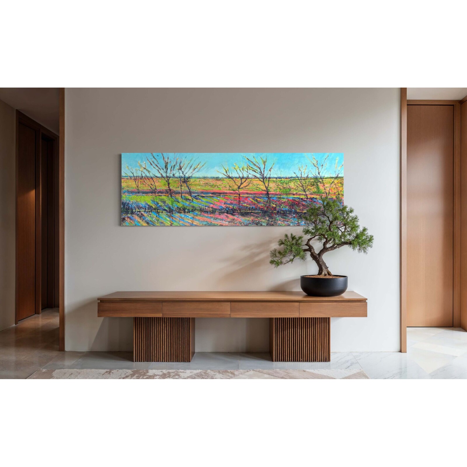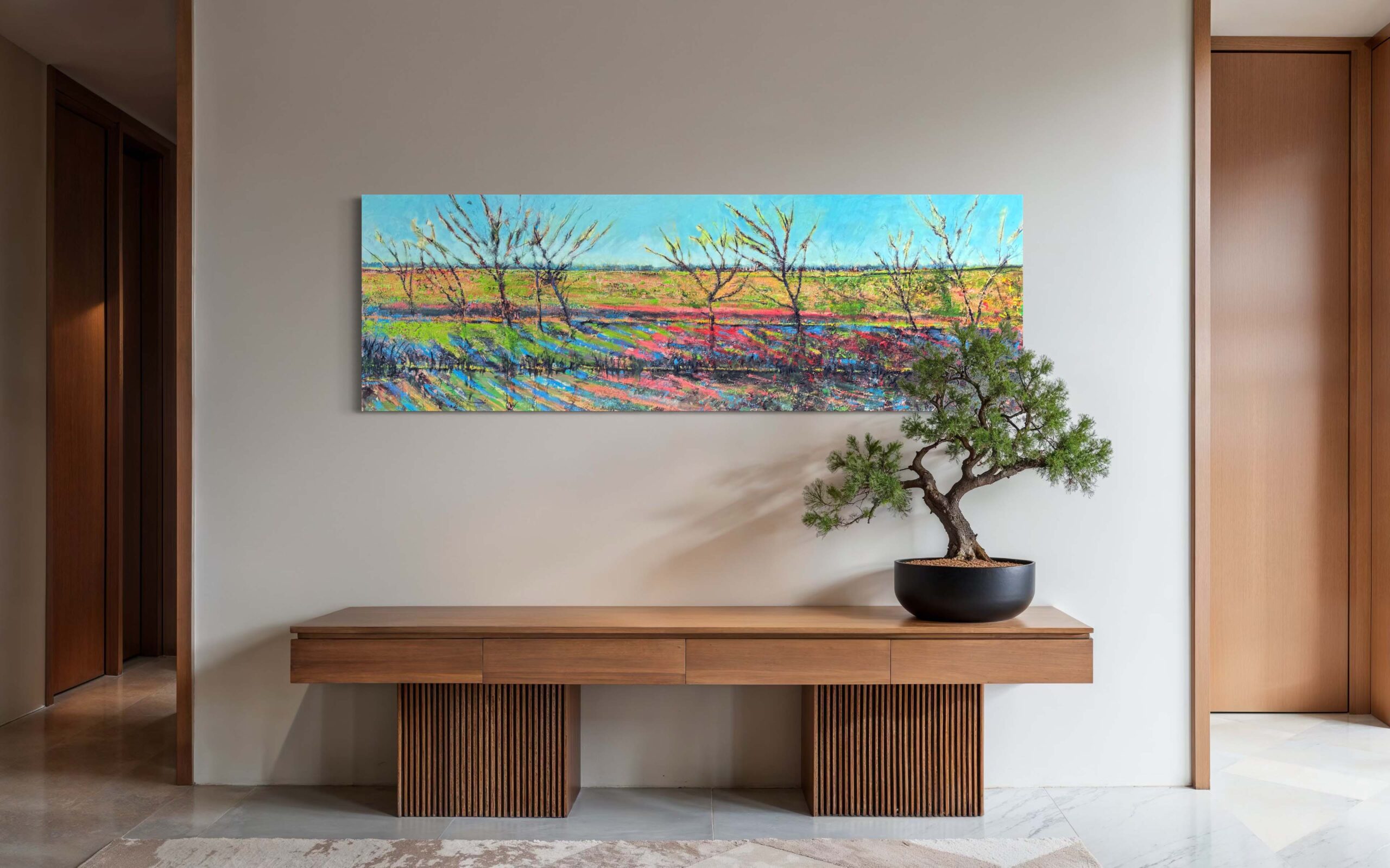 Het kunstwerk is te bewonderen in onze galerie in Amersfoort. Hier kun je het schilderij in het echt bekijken en de details van dichtbij ervaren. Daarnaast is het kunstwerk beschikbaar in onze kunstuitleen, zodat je het eerst kunt uitproberen voordat je tot aankoop overgaat.
