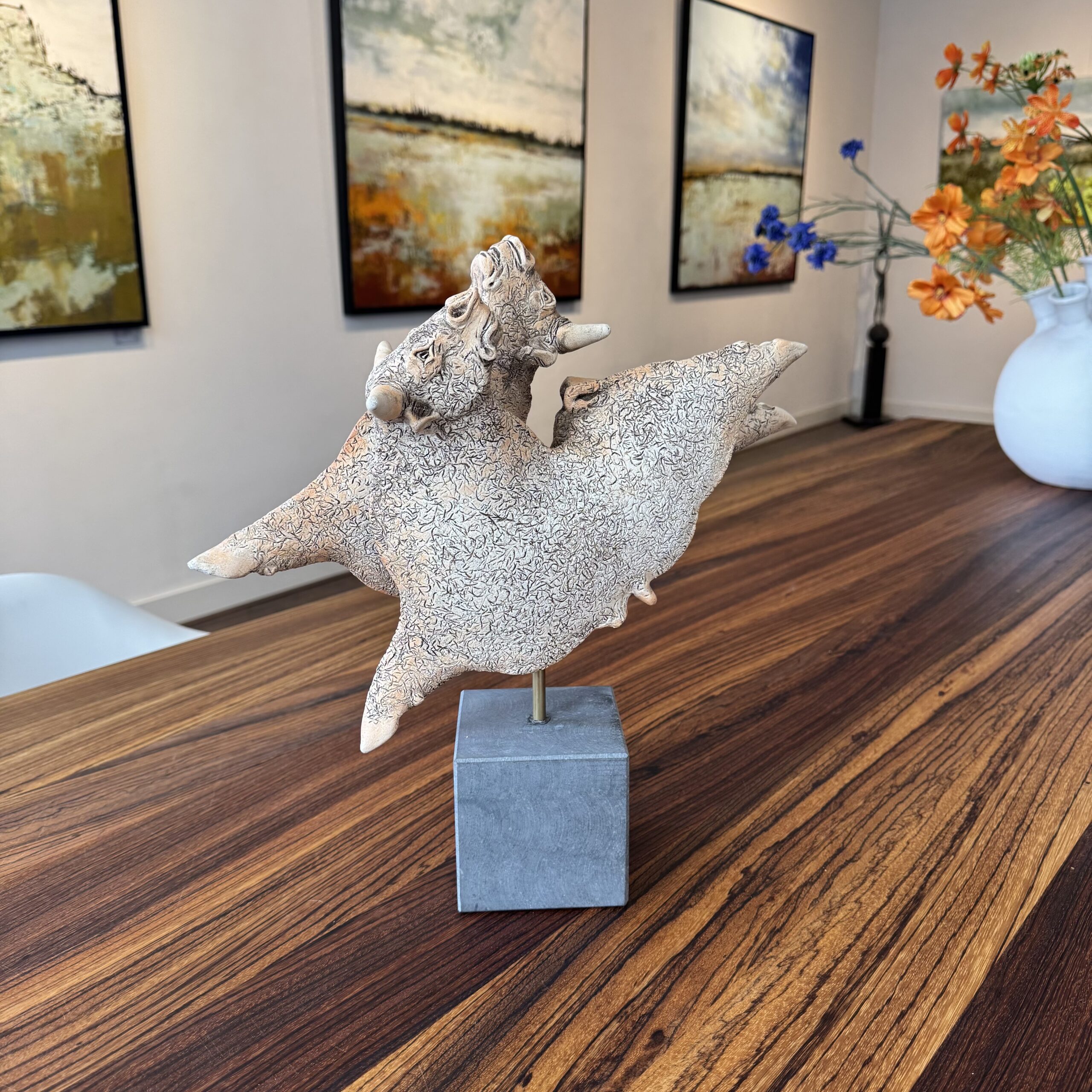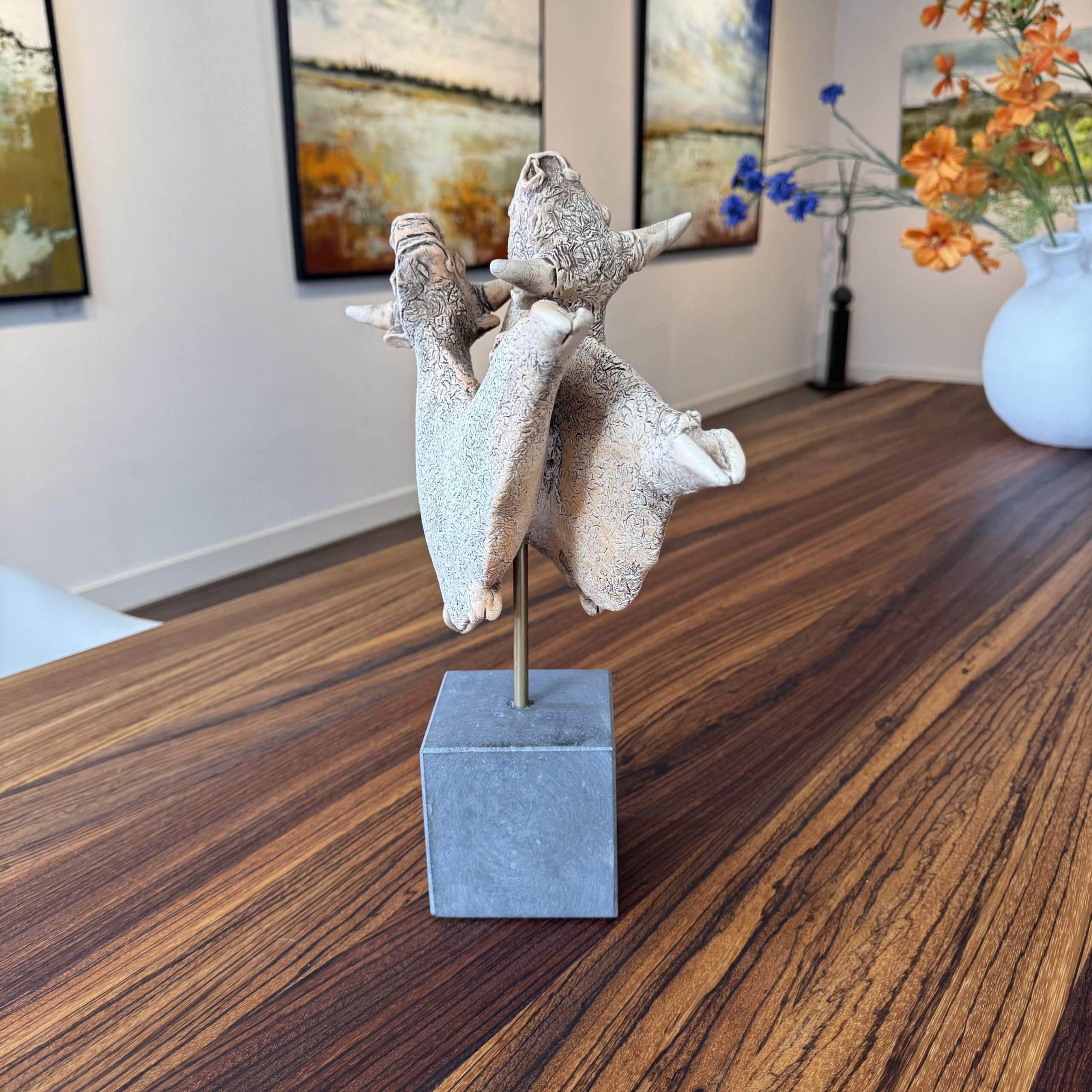 Prachtig origineel beeld van de befaamde kunstenaar Lei Hannen, uiteraard een uniek exemplaar. Het beeld is bevestigd op een natuurstenen sokkel (totale hoogte 39 cm) en wordt geleverd met certificaat van echtheid. Te zien in onze galerie in Amersfoort en ook online te bestellen. De levertijd bedraagt ongeveer 1-3 werkdagen.