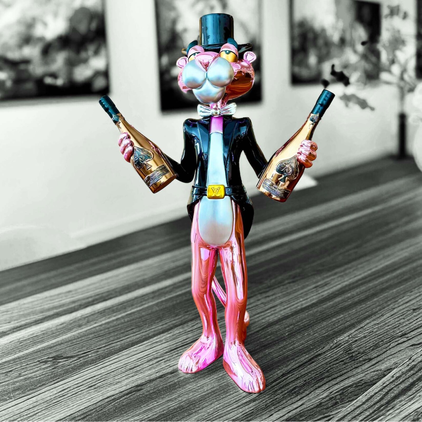 “Mr. Pink Champagne” is meer dan alleen een beeld; het is een viering van stijl en charisma, en belichaamt de geest van degenen die het aandurven om stoutmoedig te zijn. Ideaal voor verzamelaars en liefhebbers van zowel luxe als popcultuur. Dit stuk is een oogverblindende aanvulling op elke collectie en zorgt voor gesprekken en bewondering.