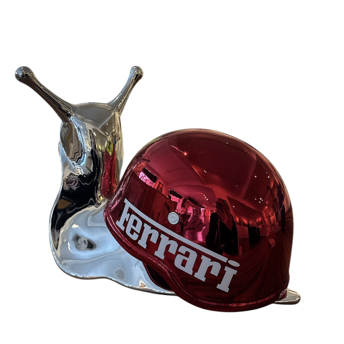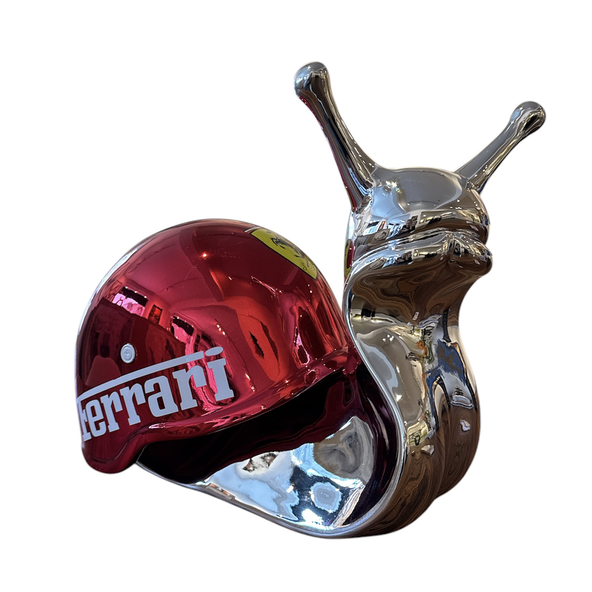 ‘Speed Snail Ferrari’ is een geweldig PopArt beeld in de vorm van een slak met een helm. In de snelle wereld van Ferrari kan deze slak het allemaal maar net bijbenen. Dit fraaie beeld is gemaakt in een zeer gelimiteerde oplage van 25 stuks en is voorzien van certificaat. Het beeld, gemaakt van hoogwaardig polystone, heeft bij de Ferrari helm een mooie roodverchroomde afwerking. De slak zelf is in het zilver verchroomd wat in totaal een bijzondere uitstraling geeft! Deze slak is ongeveer 35cm lang en 31cm hoog.