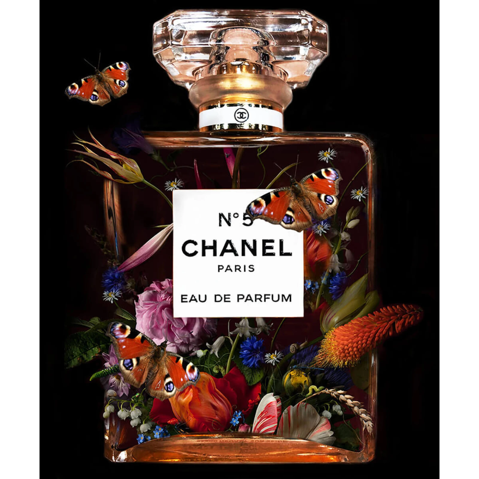 Ontdek het adembenemende kunstwerk Chanel Butterfly van de getalenteerde kunstenares Mascha de Haas. Dit unieke stuk combineert fotografie en mixed media op dibond, afgewerkt met een dikke laag epoxyhars. Deze hoogwaardige afwerking geeft het kunstwerk een prachtige glans en een indrukwekkende dieptewerking. Het werk is voorzien van een onzichtbaar aluminium frame aan de achterzijde, waardoor het kunstwerk elegant zwevend aan de muur hangt.