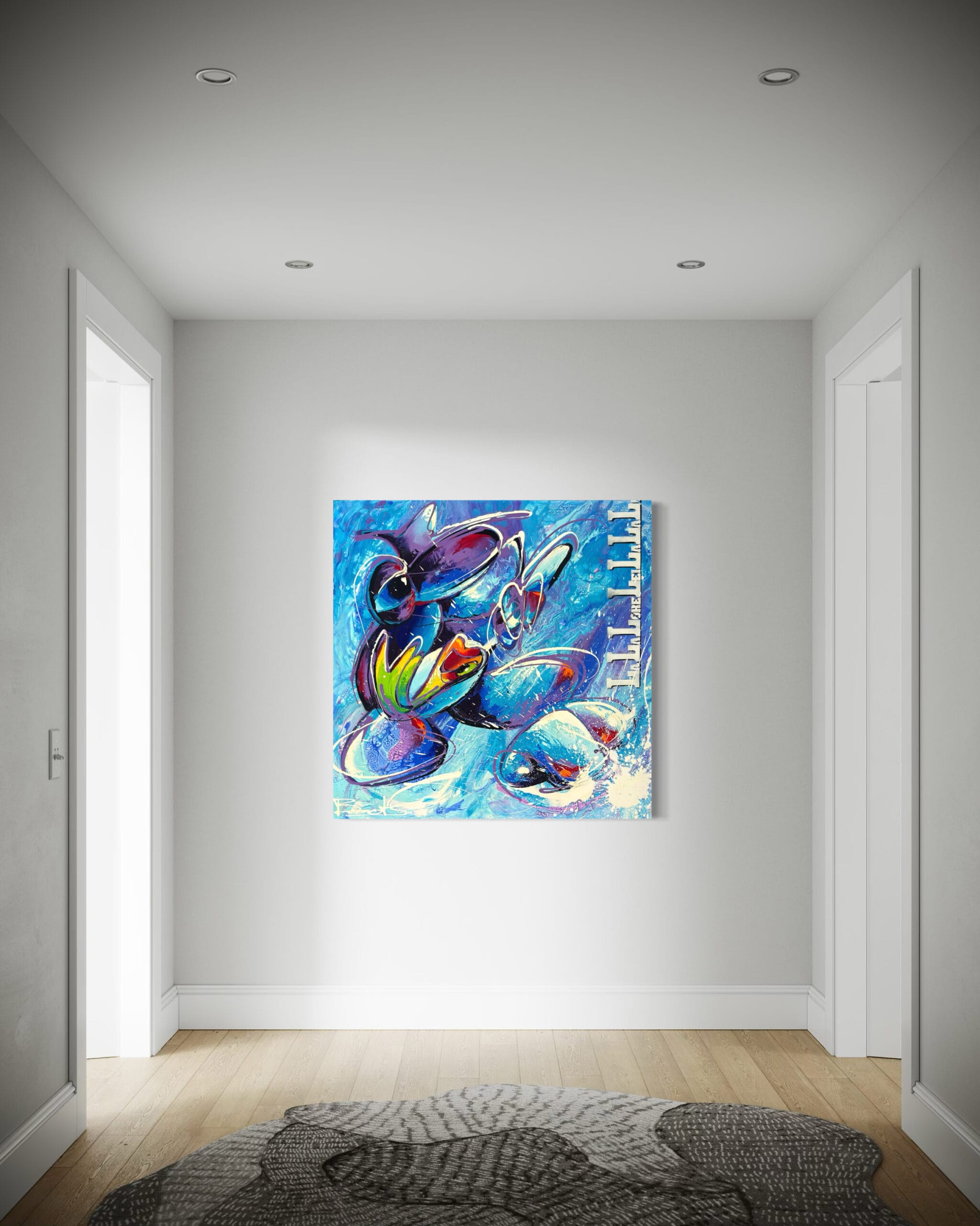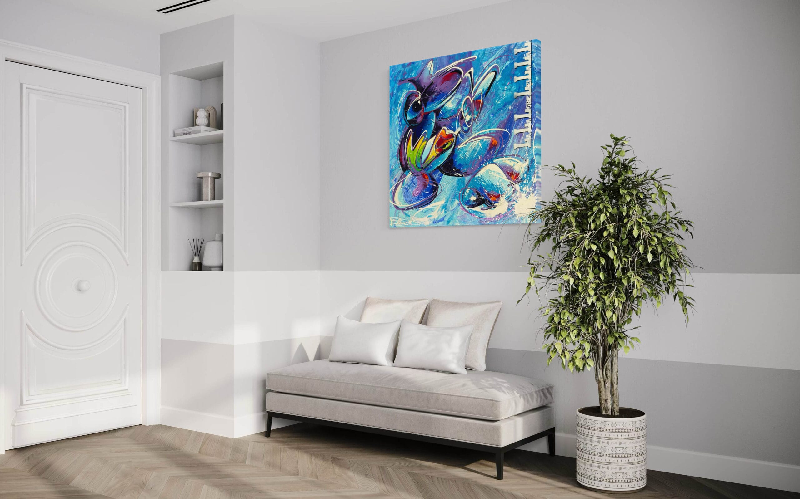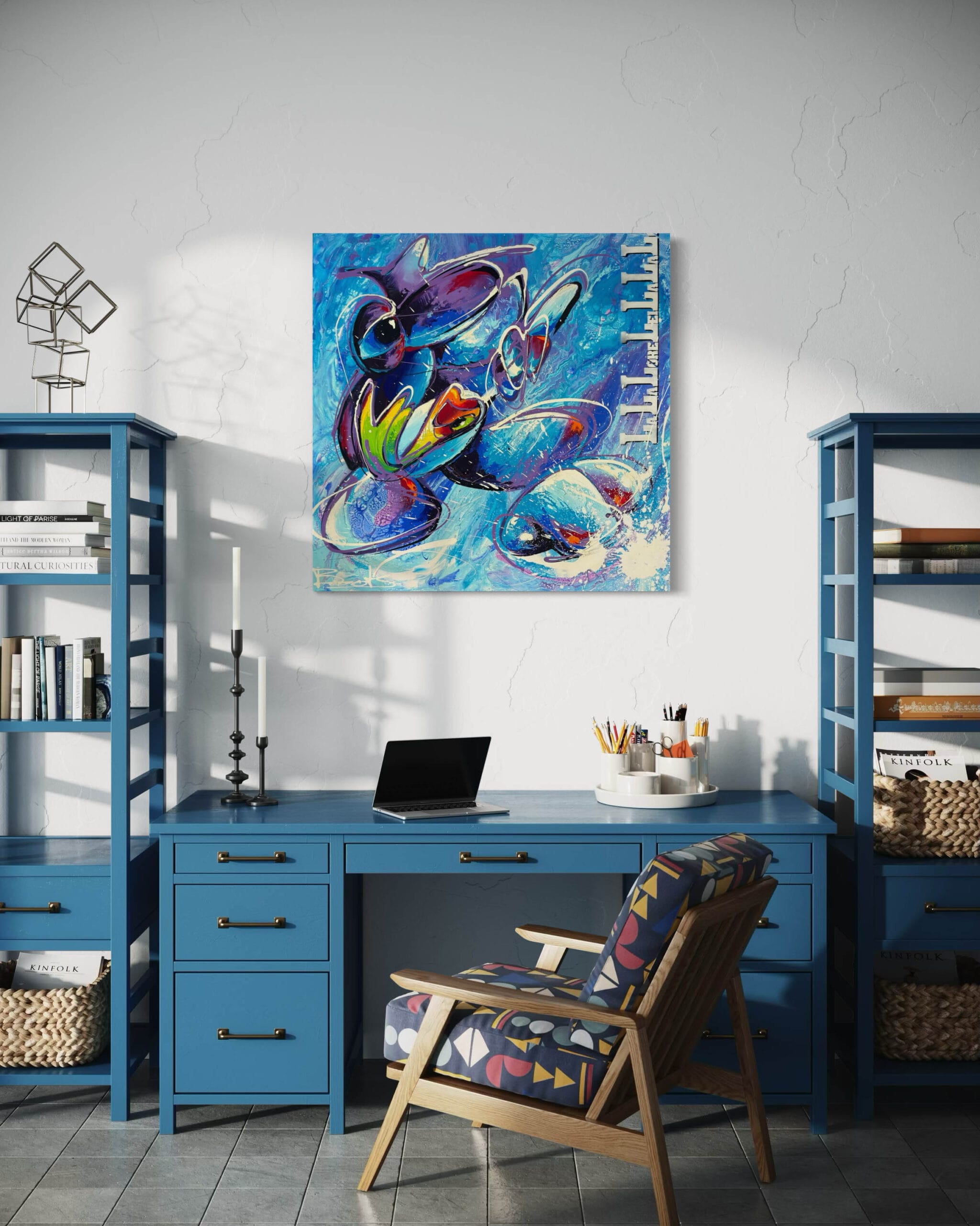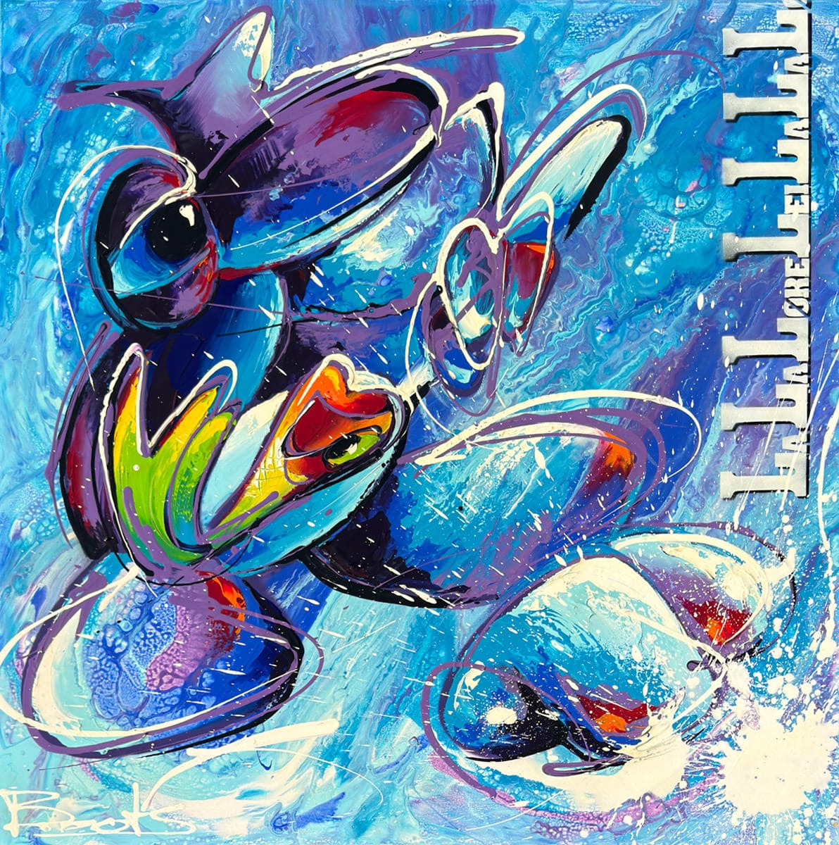Prachtig kunstwerk van Sandra Boots. Dit kunstwerk swingt! Met een formaat van 100 x 100cm en geschilderd op een dik frame van 5cm is dit een echte eye-catcher! De felle acrylkleuren zijn overgoten met een dikke laag glanzend vernis zodat de kleuren nog meer tot leven komen! Het unieke schilderij komt uiteraard met een certificaat van echtheid. Te zien in onze galerie en ook beschikbaar in onze Kunstuitleen. Wegens wisseling van de collectie bieden wij dit kunstwerk tijdelijke aan voor een hele scherpe prijs!