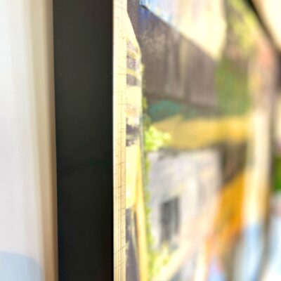 Het schilderij is vervaardigd met hoogwaardige olieverf op linnen, wat zorgt voor een duurzame en levendige uitstraling. Het kunstwerk is bovendien voorzien van een fraaie, moderne baklijst, wat het geheel een eigentijdse en stijlvolle uitstraling geeft.